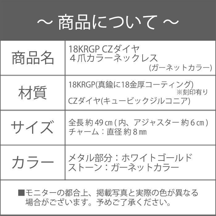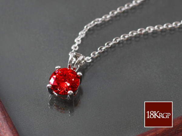 新品/ネックレス/18KRGP/ガーネット/ダイヤ/シルバー/18金/K18/レディース/ホワイトゴールド/一粒/CZ/1月/誕生石/カラー/赤/WG