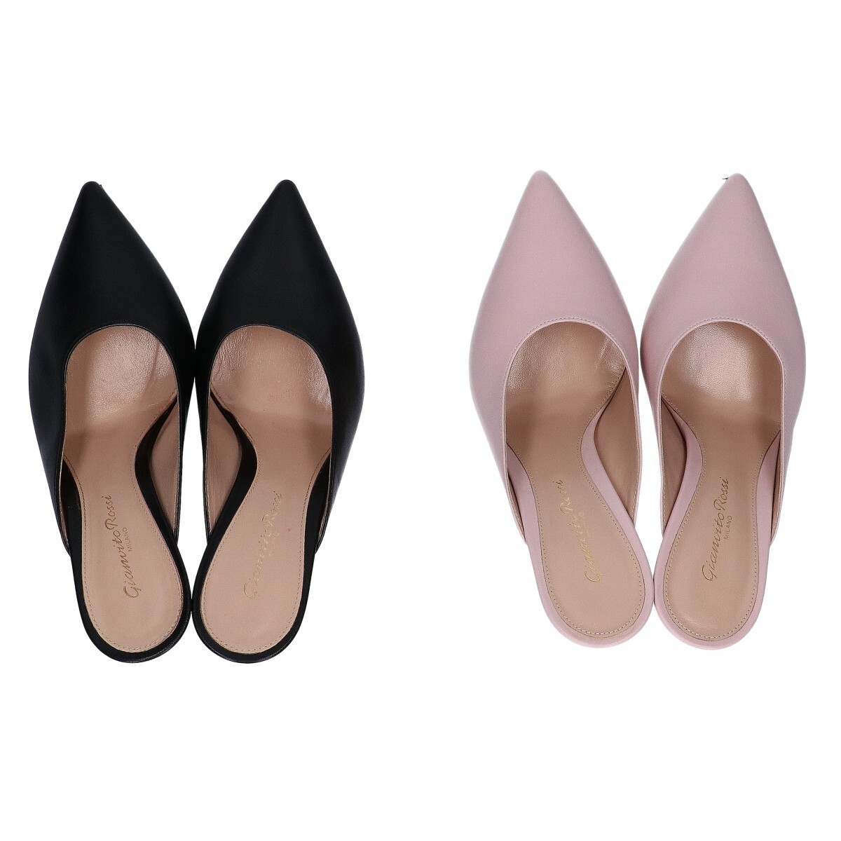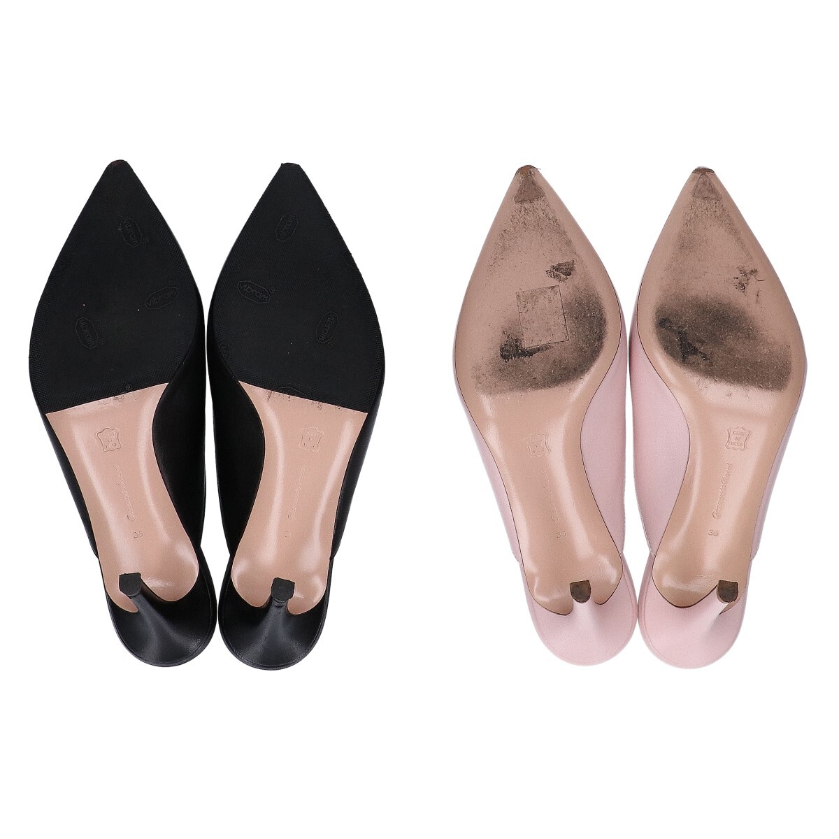 【1円】Gianvito Rossi ジャンヴィトロッシ レザー ポインテッドトゥ ミュール 2足セット 36 ブラック/ピンク レディース