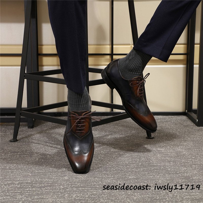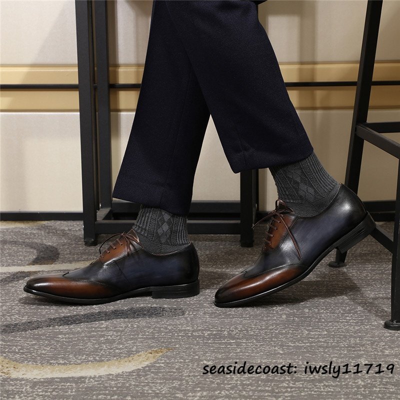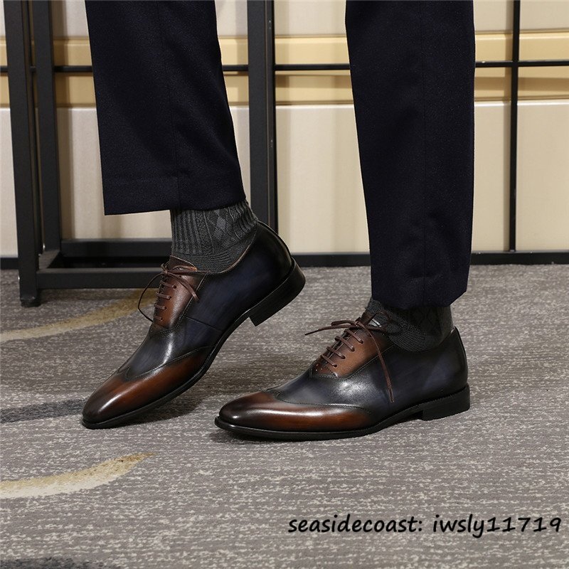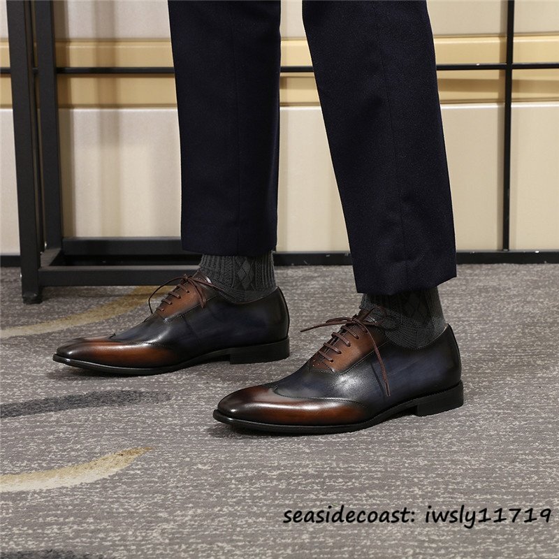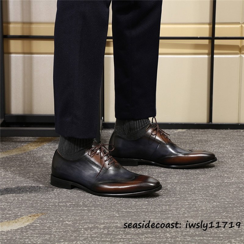 入手困難■メンズシューズ 超希少 切替 レザーシューズ 本革 職人手塗り上げ ビジネスシューズ 新品 牛革 紳士靴 革靴 フォーマル 26.0cm