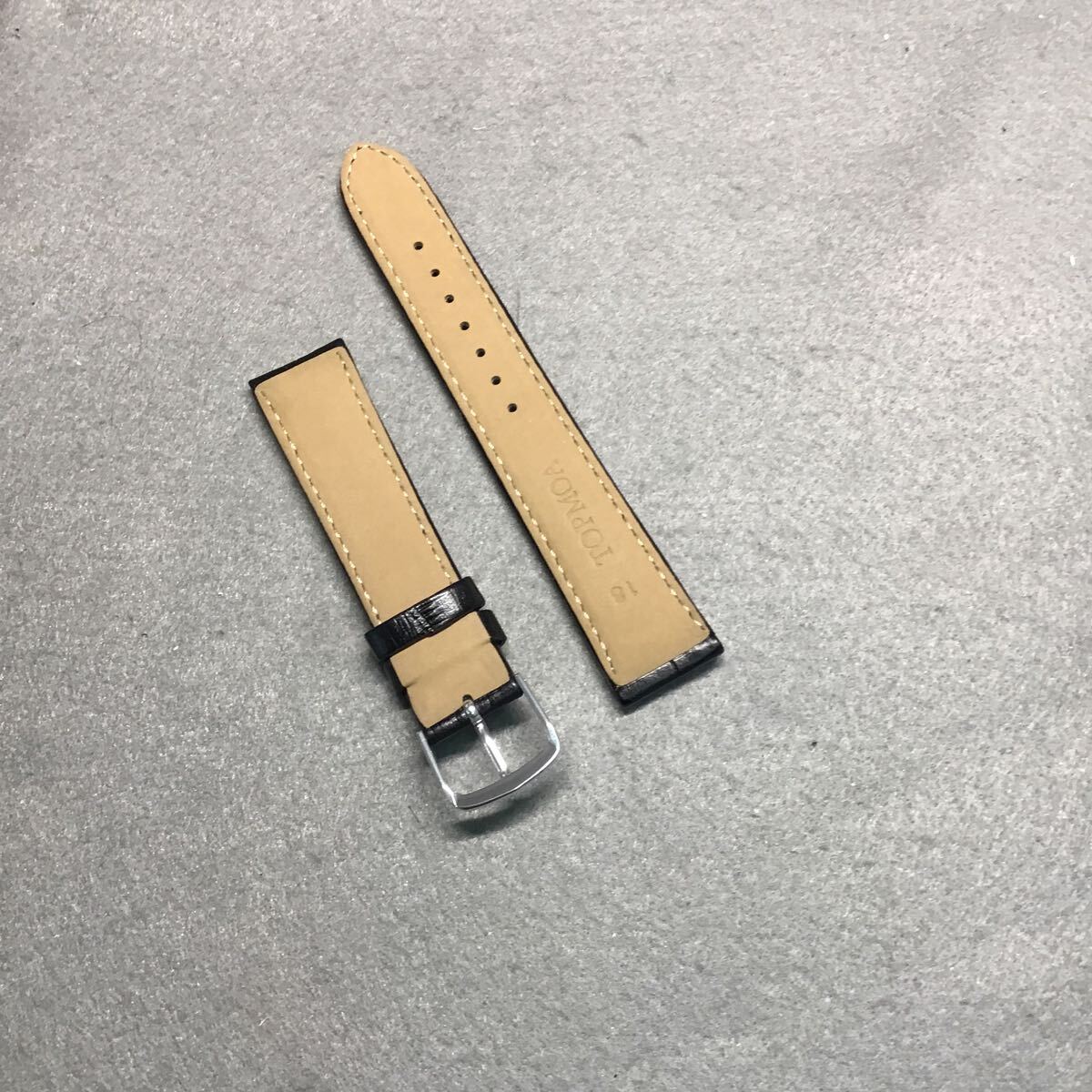 ★新品18mmトップモア・バント・カーフ型押しワニ黒