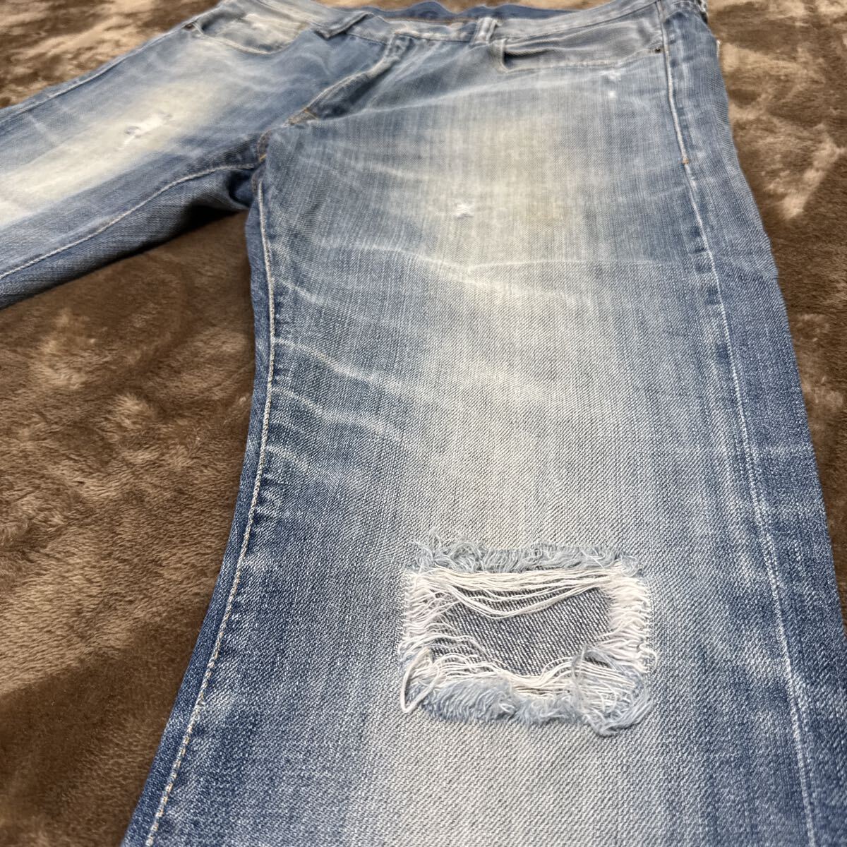 元々ダメージ加工製品ですが、度合いやシミは写真掲載にてご判断して下さい。