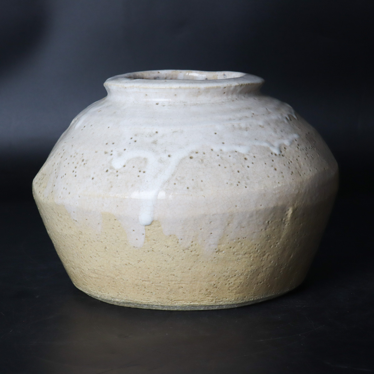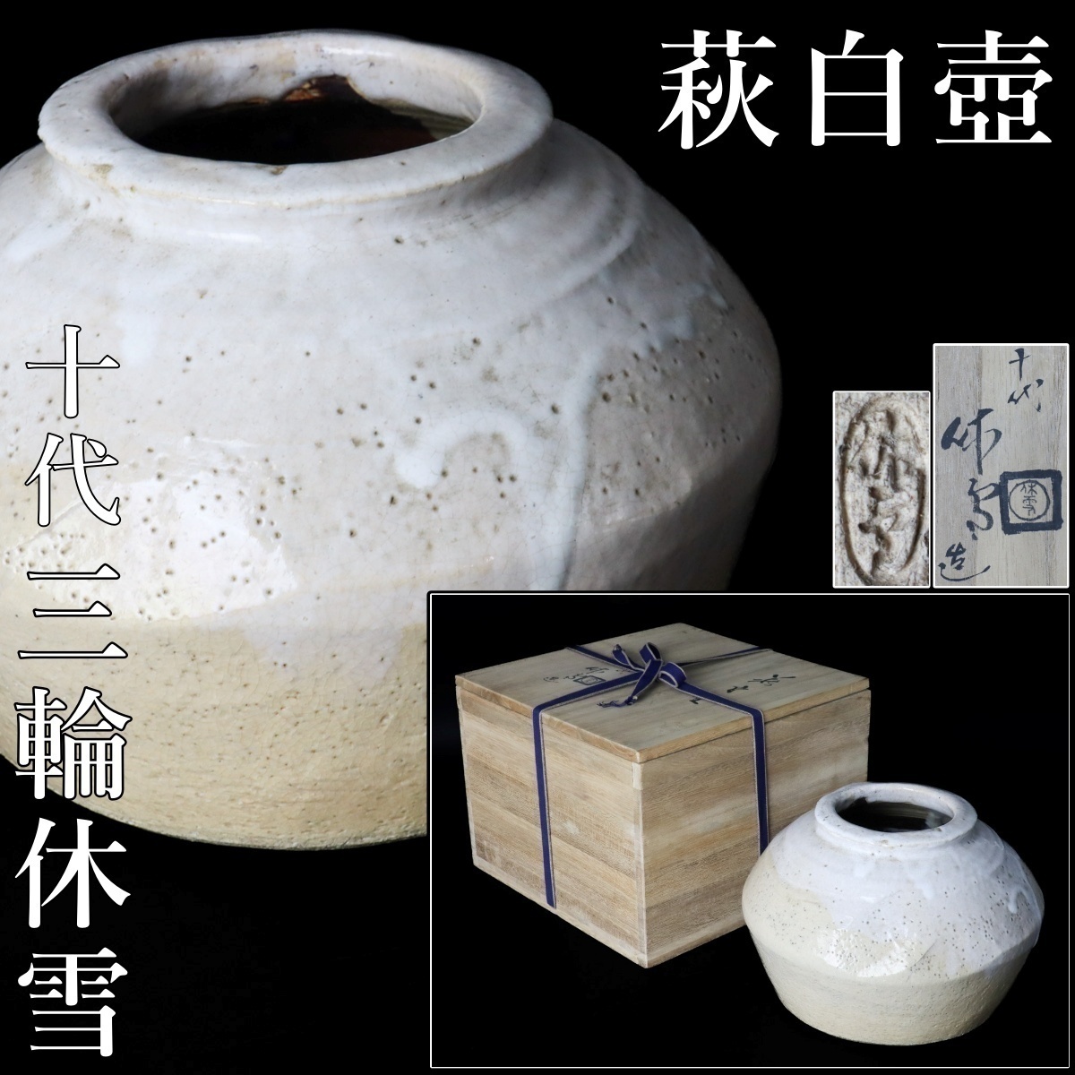 【宙】人間国宝 十代 三輪休雪 萩白釉壺 24.8cm 共箱 上品な白釉と柔らかな胎土が織りなす静謐な景色 名門の格調高き壷 [D]7JI02.il.D