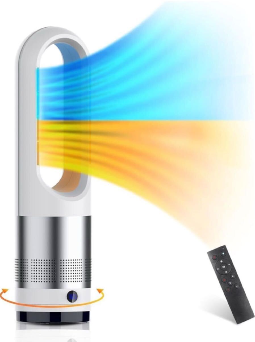 扇風機 タワーファン 冷暖兼用【3段階温風/8段階送風】羽なし扇風機 省エネ リモコン付き 左右首振り 1-9hタイマー設定可