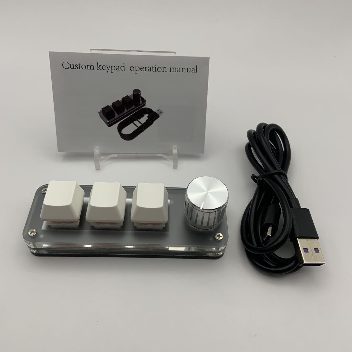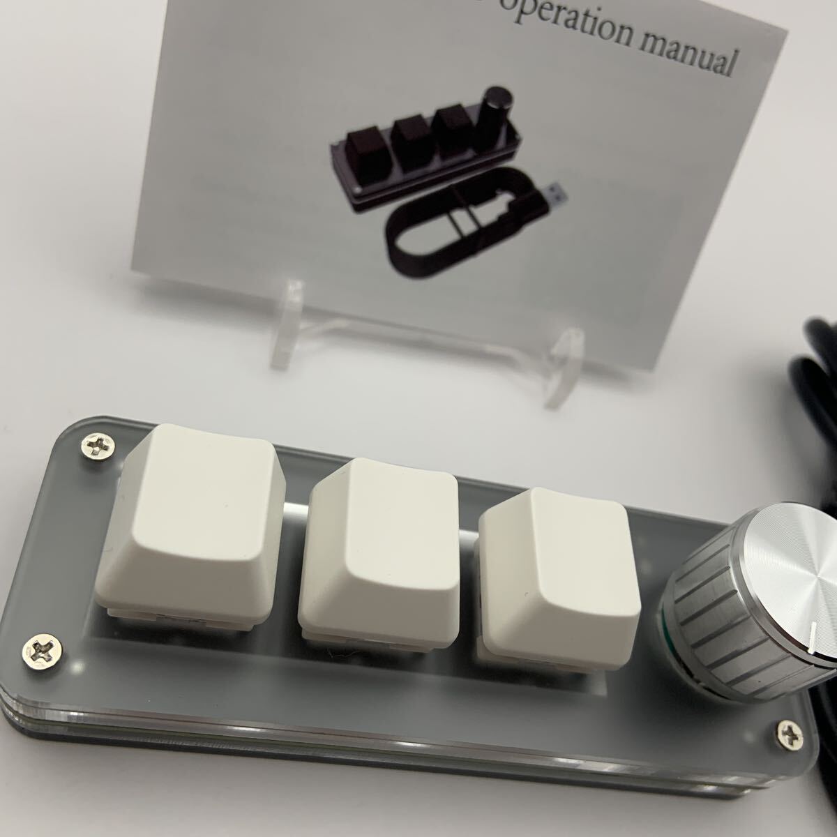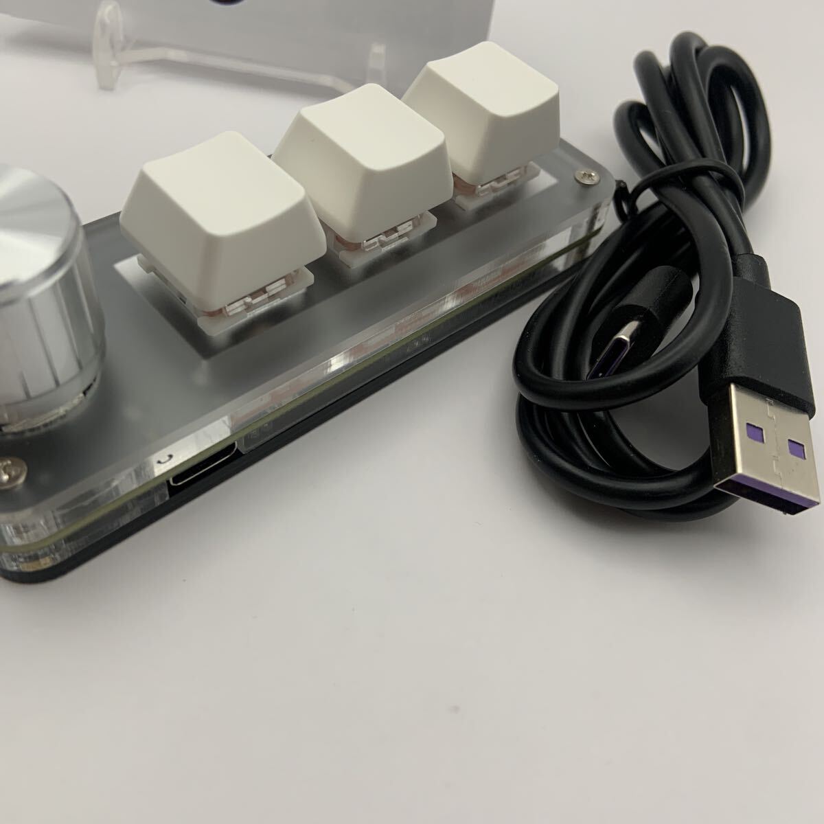 USBメカニカルゲームキーボード ホワイト 3キー ノブ マクロ カスタムキーボード RGB 左手デバイス