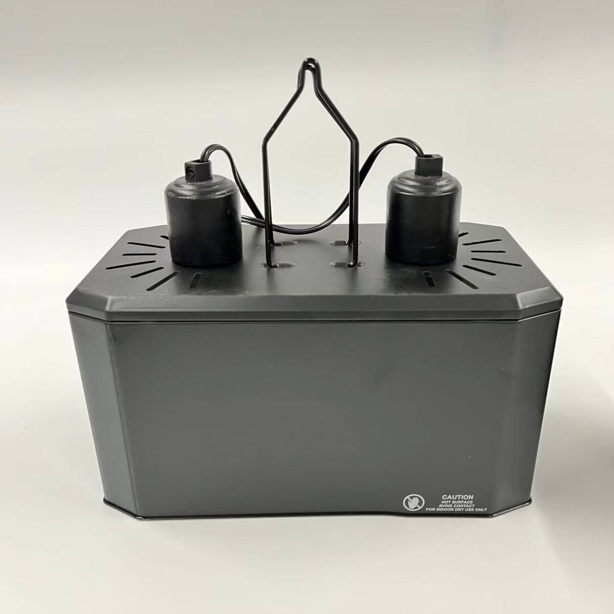 耐久性に優れた素材を使用していますが、点灯中は高温になります。安全にお使いいただくために、製品側面にある「CAUTION」表示に従い、使用中は製品に直接触れないようにし、必ず屋内の乾燥した場所でご使用ください。火傷や感電防止のため、十分に注意して設置・使用しましょう。