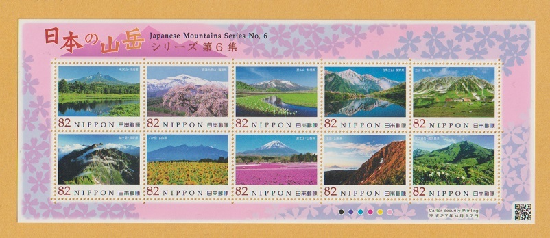 ●【記念切手】日本の山岳シリーズ 第6集《82円》 切手シート 2015年  未使用