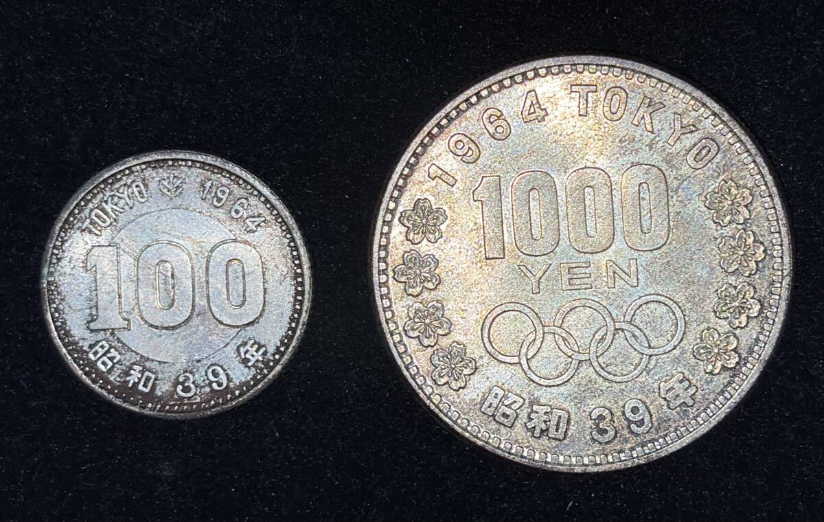 □□□②純正ケース入り 1964年東京オリンピック 昭和39年 千円 銀貨  100円銀貨 セット□□□