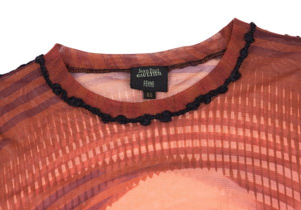 | ジャンポールゴルチエ ファムJean Paul GAULTIER FEMME サイケフェイスプリントパワーネットカットソー ボルドー40 |