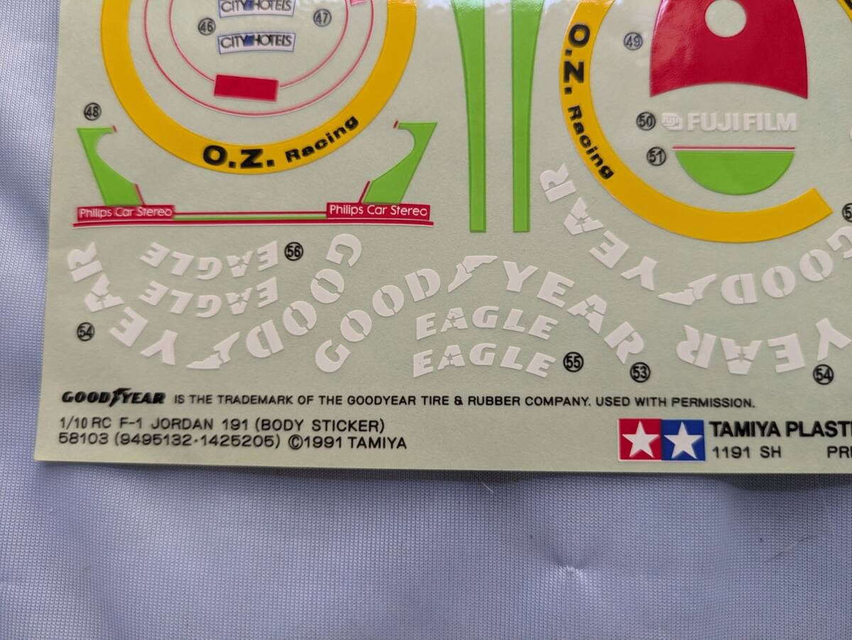 タミヤ1/10RC F1 ジョーダン 191 デカール 一部使用済み ジャンク 当時物 希少品