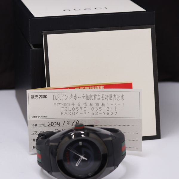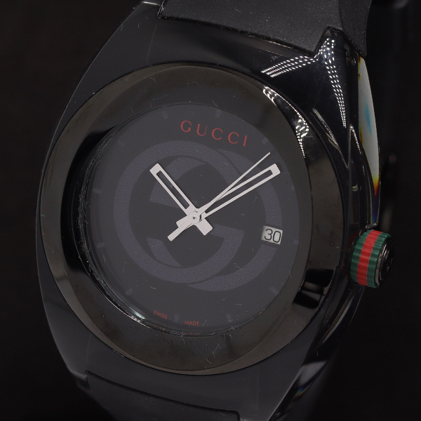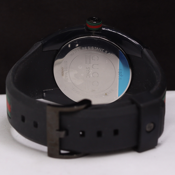 1円 保/箱付 グッチ 137.1 QZ ブラック文字盤 メンズ 腕時計 0078100 9ERT MST