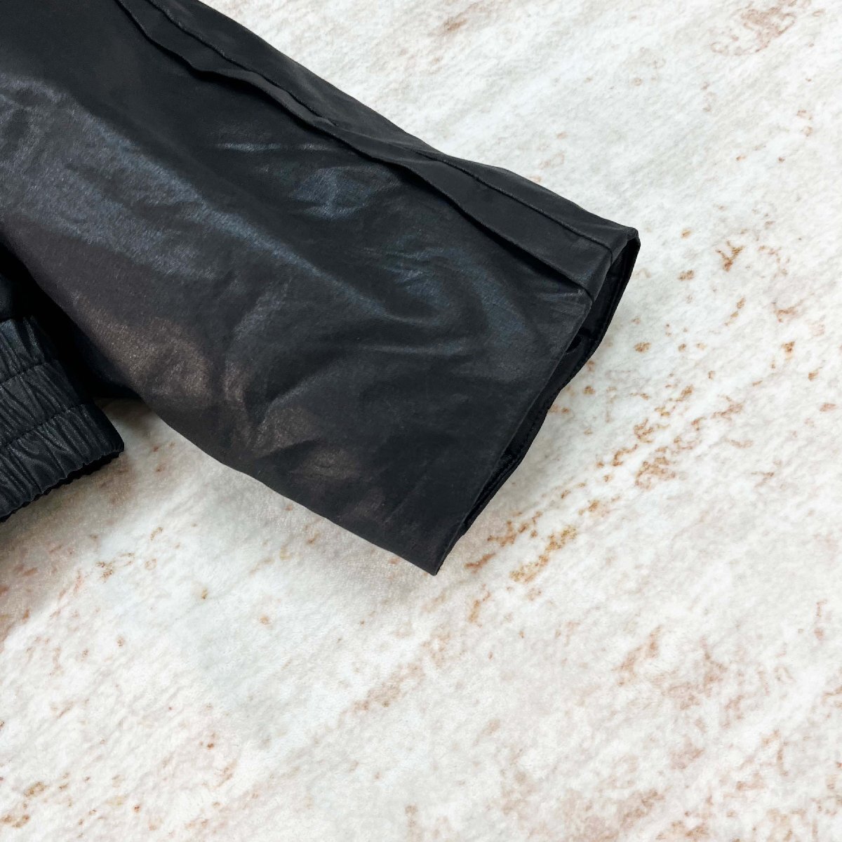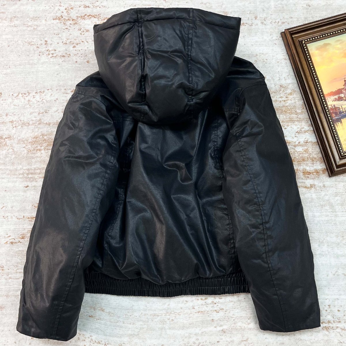 マットなレザー調の表面が上品さを際立たせ、羽織るだけでコーディネートをグッと引き締めます。無駄を削ぎ落としたシンプルな無地デザインで、どんなスタイルにもマッチ。ショート丈でスタイルアップ効果も抜群です。