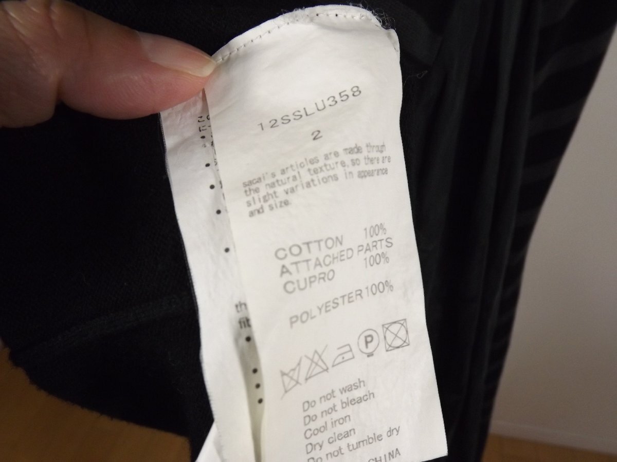 sacai luck(サカイ ラック)コットン×キュプラ 切り替え 裾切りっぱなし ボーダー ワンピース サイズ2 レディース