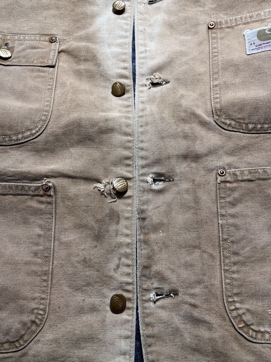 定番のブラウンダックのフェード、ダメージ有りの雰囲気ある1枚です。この年代のチョアコートは数少ないと思います。