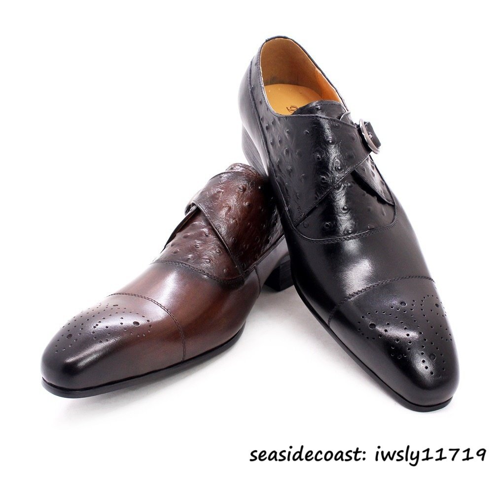 最高級*モンクストラップ 超希少 上質牛革 ビジネスシューズ メンズ 職人手作り 紳士靴 革靴 本革 レザーシューズ 結婚式 ブラウン 24.5cm