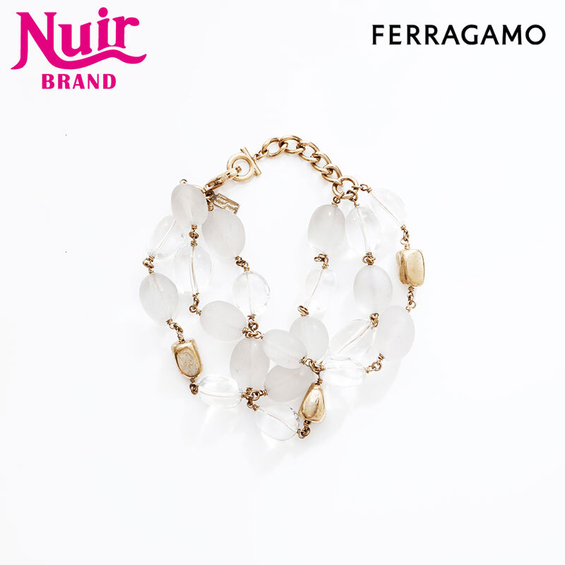 極美品 Salvatore Ferragamo ストーン 3連 ブレスレット ホワイト