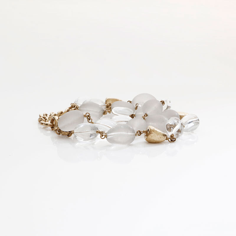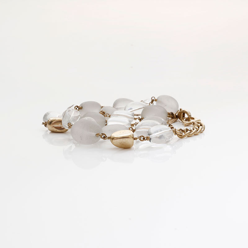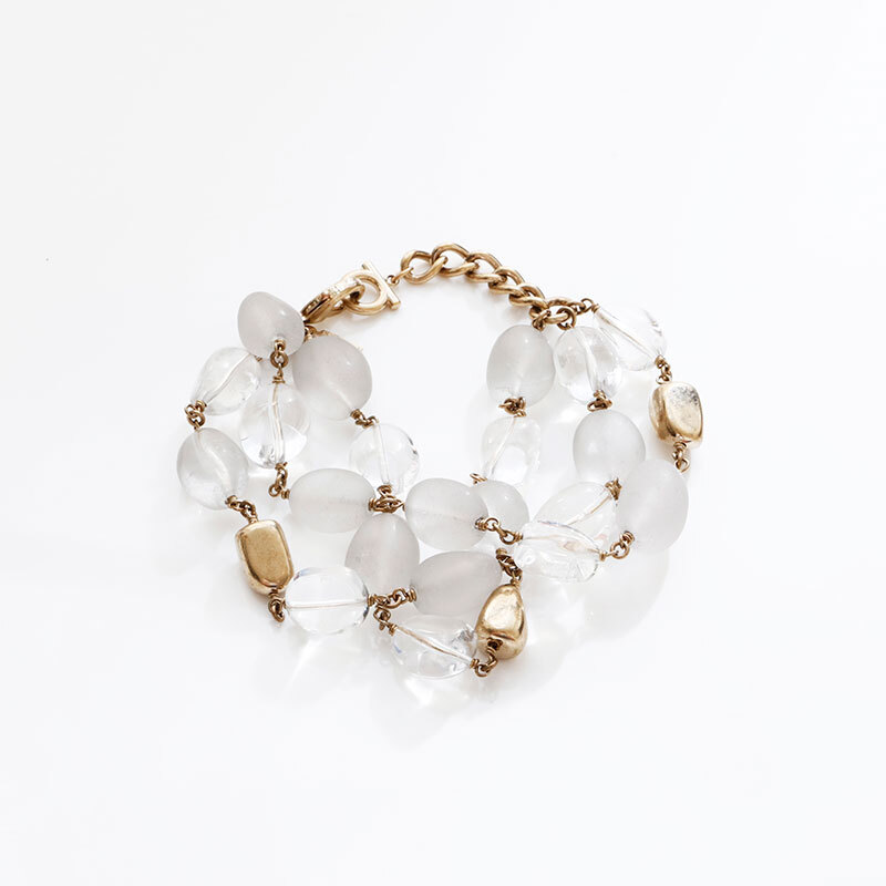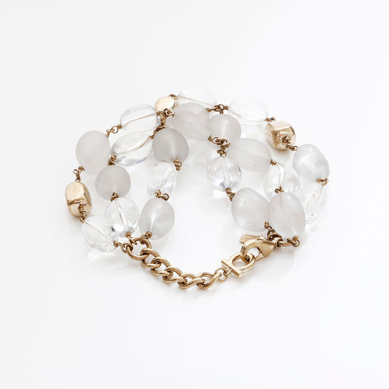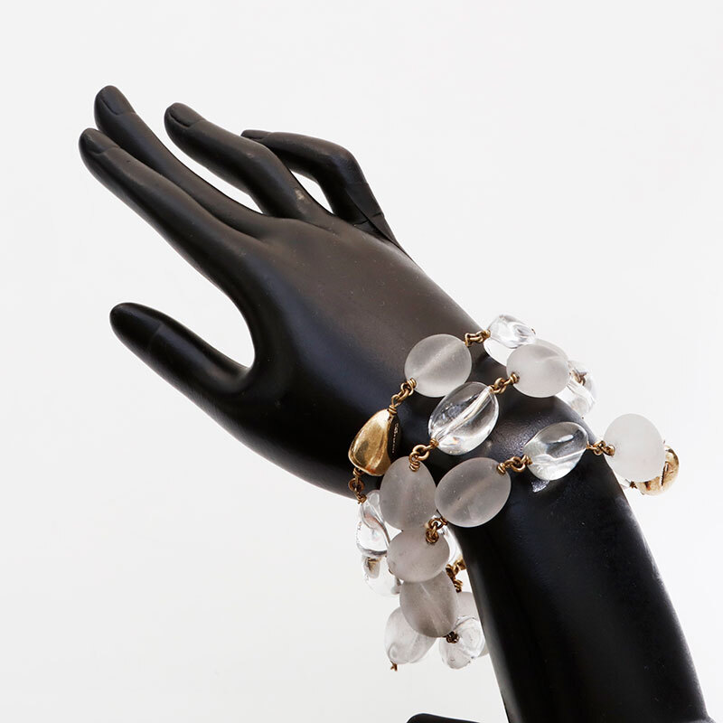 極美品 サルヴァトーレフェラガモ Salvatore Ferragamo ストーン 3連 ブレスレット ホワイト WS20344
