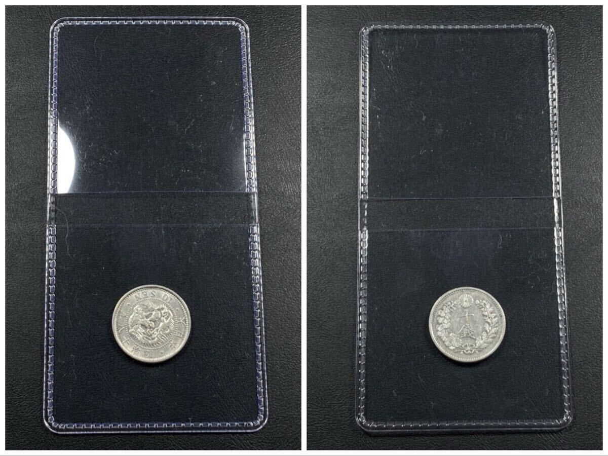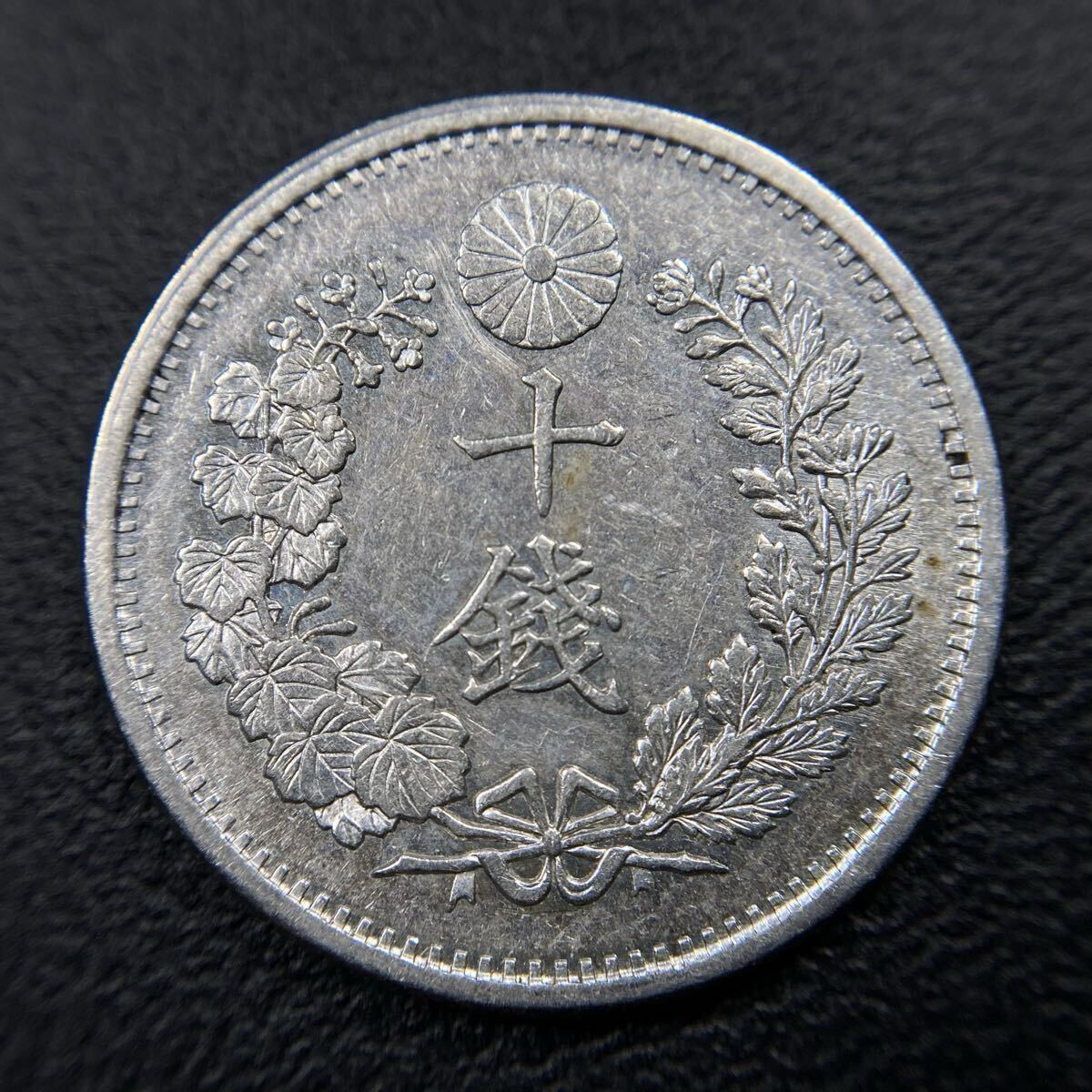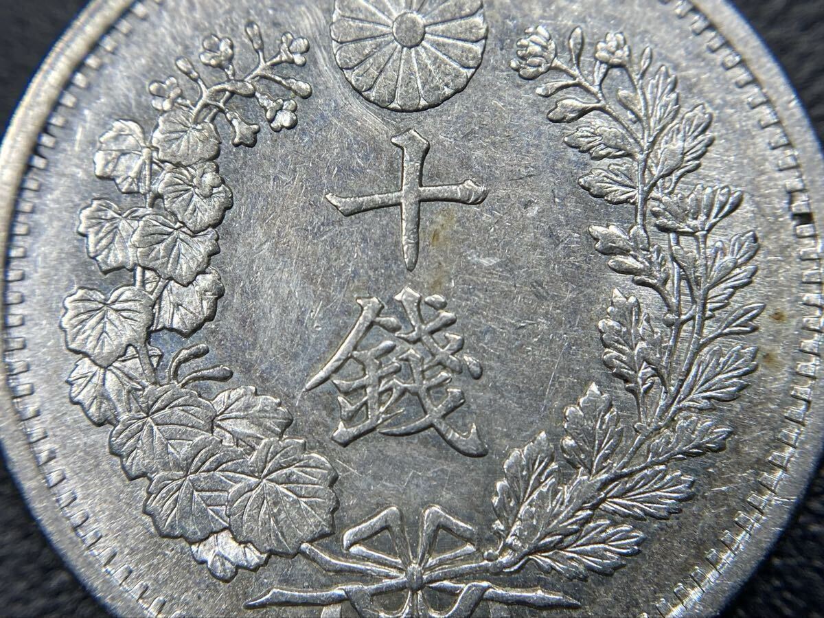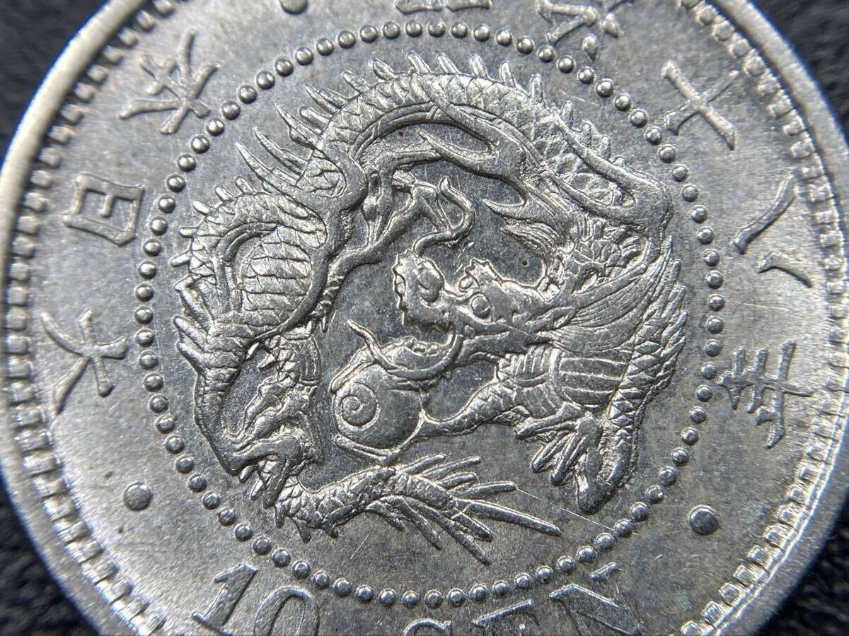 こちらは入手時未使用品の竜10銭銀貨の明治18年になります。