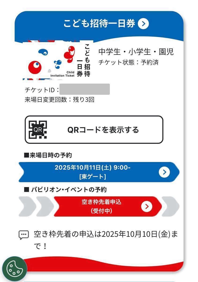 入場日時変更は3回可能、パビリオン予約はなしです。