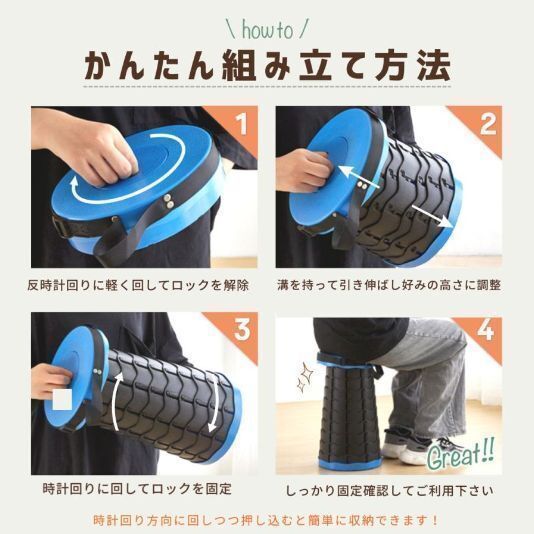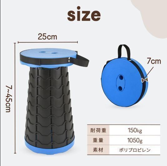 ポータブル チェア アウトドア 折りたたみ椅子 コンパクト 軽量 ミニ 伸縮 スツール ブルー