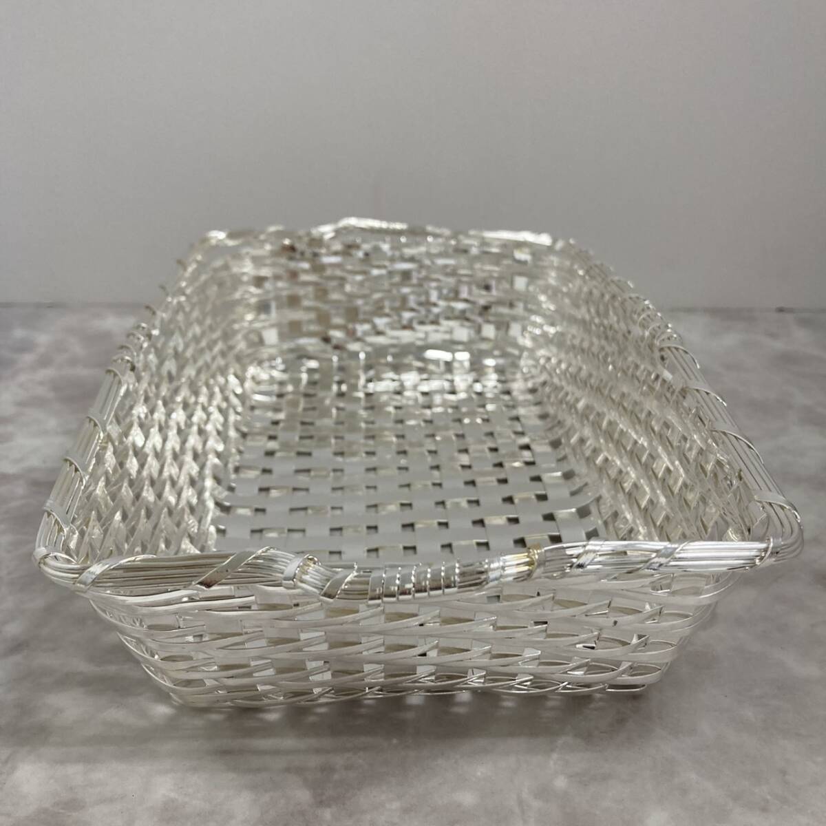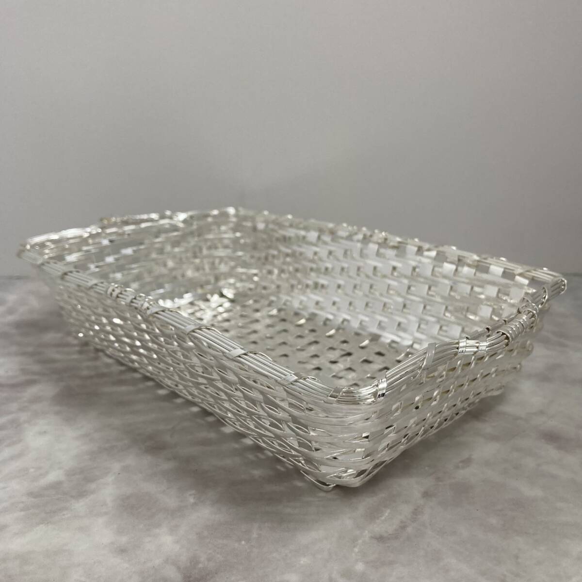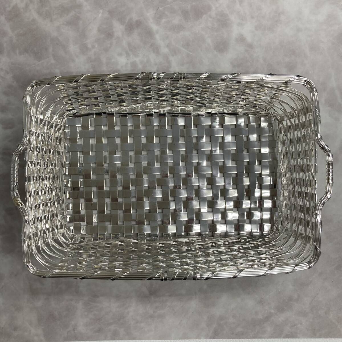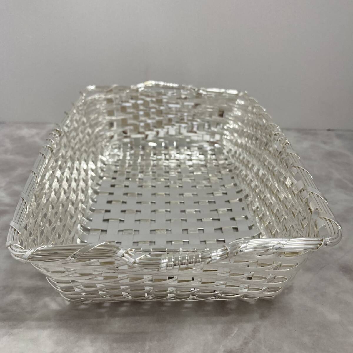 ご覧いただき誠にありがとうございます。 個人での出品ですが丁寧に対応いたします。 素敵なご縁がありますように。 ■商品名■ #M20906 WAKO 銀座和光 銀仕上げ 手編みバスケット 小物入れ トレー 持ち手付き かご 縦11.5cm×横15.5cm 外箱付き 未使用 長期保管品 細かい外観については写真にてご確認ください。 画像をよく確認の上ご入札お願いいたします。 写真に写っている部分以外にも撮影時に気が付かなかった傷や汚れ等があるかもしれません。 ※専門家ではない為、見落としがあるかも知れませんがその場合はご容赦ください。 | |||