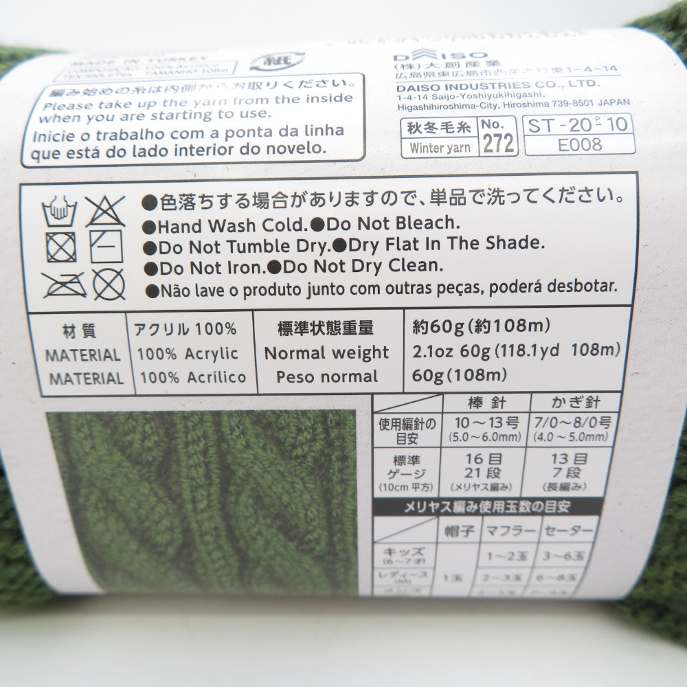 | DAISO ダイソー 毛糸 メランジ 4玉セット カーキ 1玉60g 約108m 並太 秋冬毛糸 |