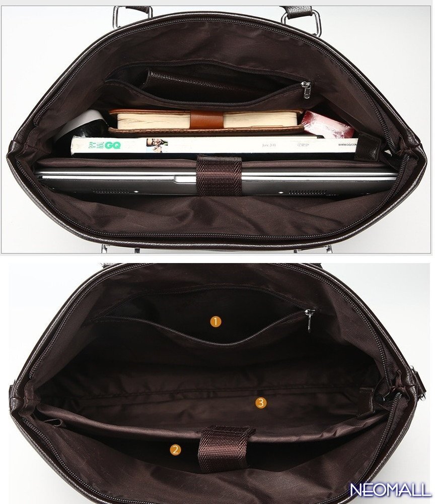 人気☆ 新品 メンズ 高級PUレザー ビジネスバッグ【609】ブラウン ブリーフケース ショルダー スクエア 横型 大人気 質感◎