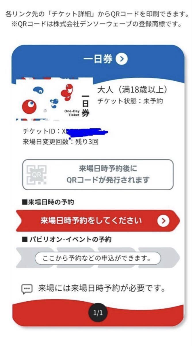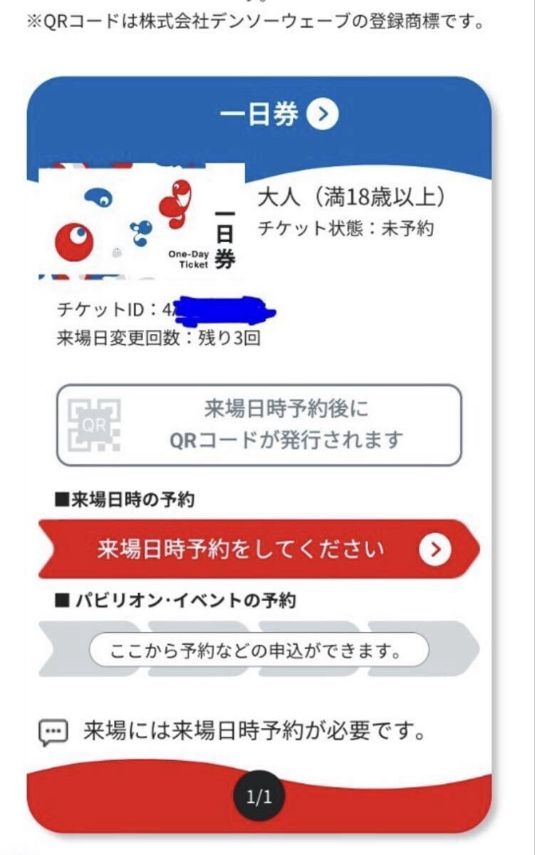 チケット受け渡し後は、ご自身で「来場日時の予約」、「パビリオン予約」等を行ってください。