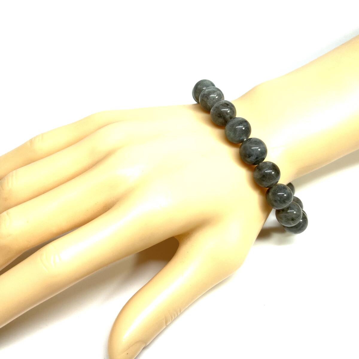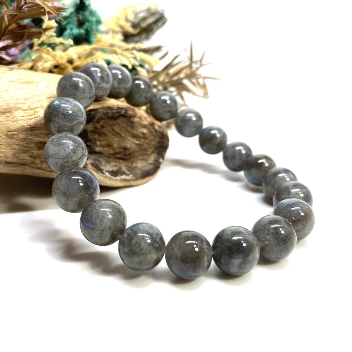 こちらは、10mm玉のラブラドライトを使用したパワーストーンブレスレットです。シンプルなデザインは、男女問わずどんなコーディネートとも合わせ易いブレスレットです。サイズは内周約17cmです。数に限りがございますので気になる方はお早めにどうぞ。