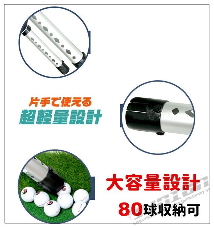 ゴルフボールキャッチャー ピッカー 回収 伸縮式 収集バッグ付 ゴルフ用品 最大80球収納