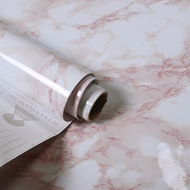 【 20m 】 大理石模様 ホワイト×レッド ピンク系 B08 壁紙 シール 61cm幅 DIY 防水 カッティングシート クロス 糊付き ウォールペーパー