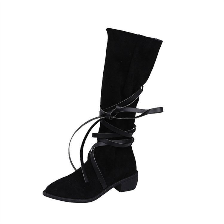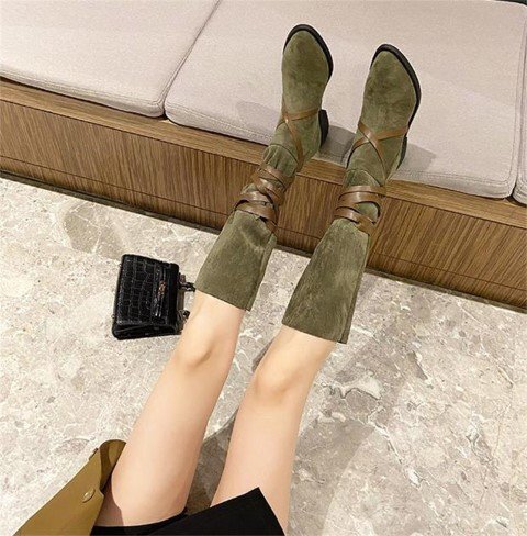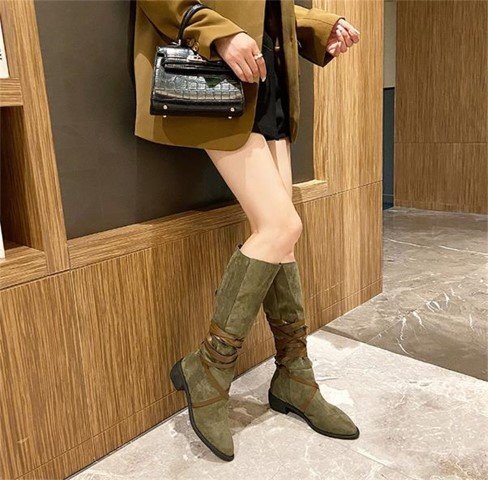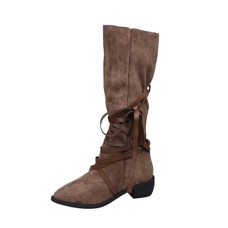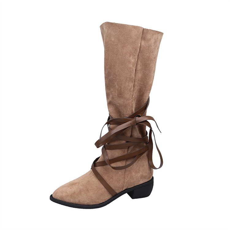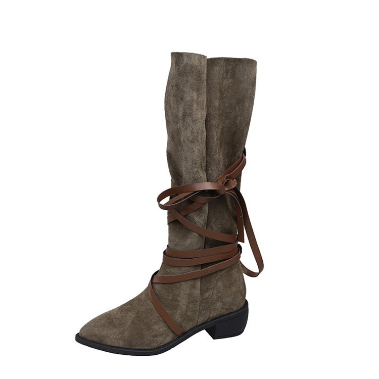 ポインテッドトゥ ショートブーツ ロングブーツ 薄手 ウエスタンカウボーイブーツ 35 ブラウン(ロングブーツ)