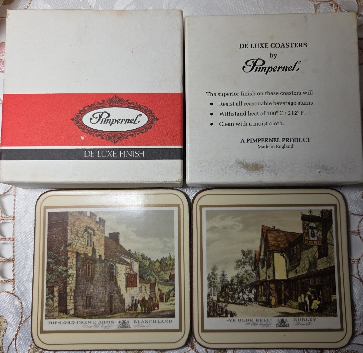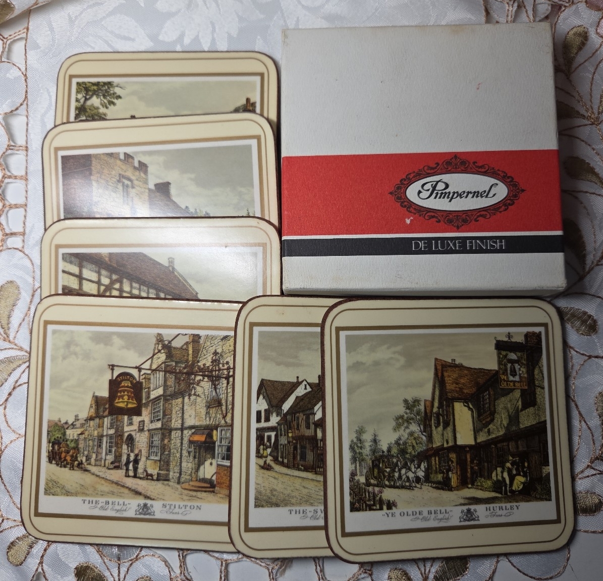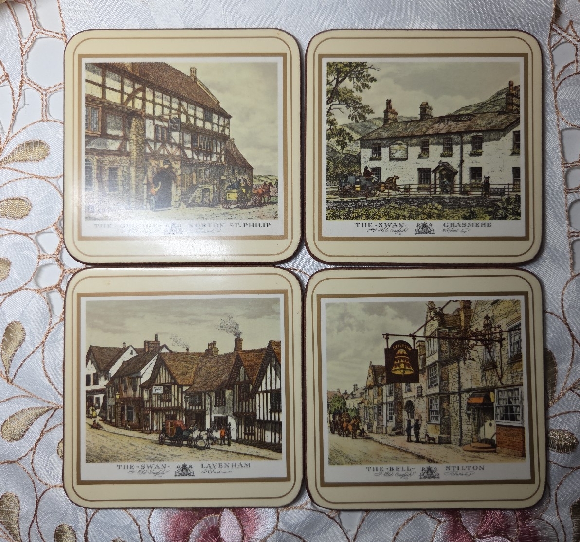 イギリスの歴史的な家を描いたコースター6枚セット。10.5センチ×10.5センチ