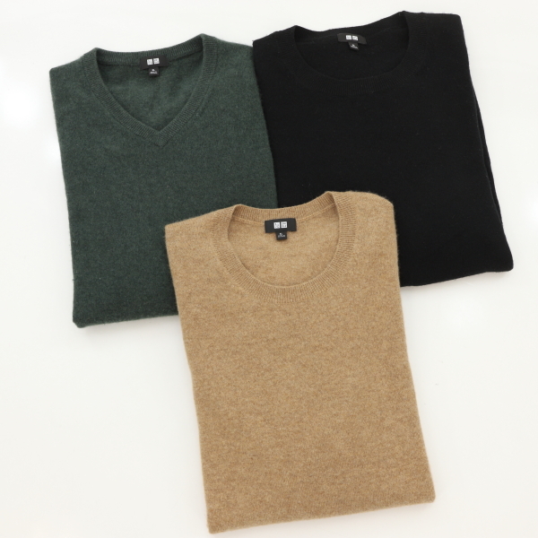 作り、デザインに、定評のある人気ブランド、「UNIQLO」の、カシミヤ100%セーター3枚組になります。