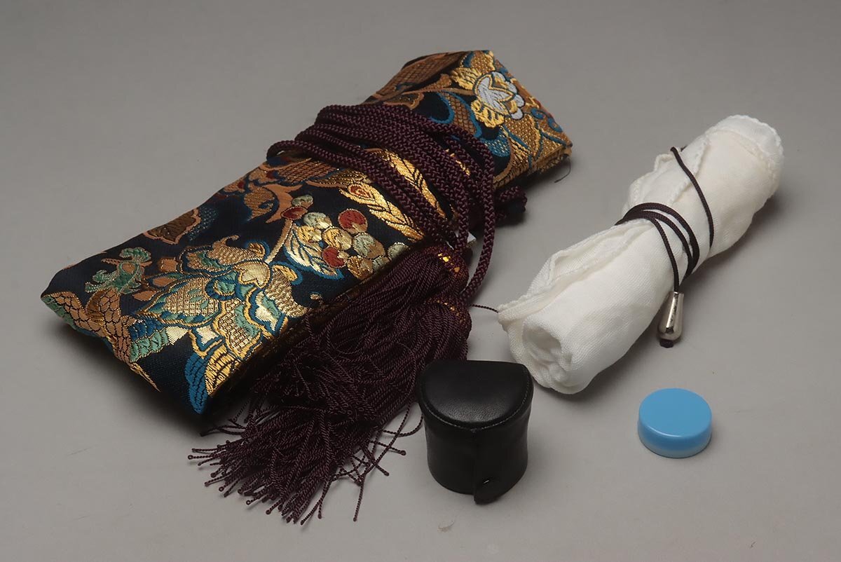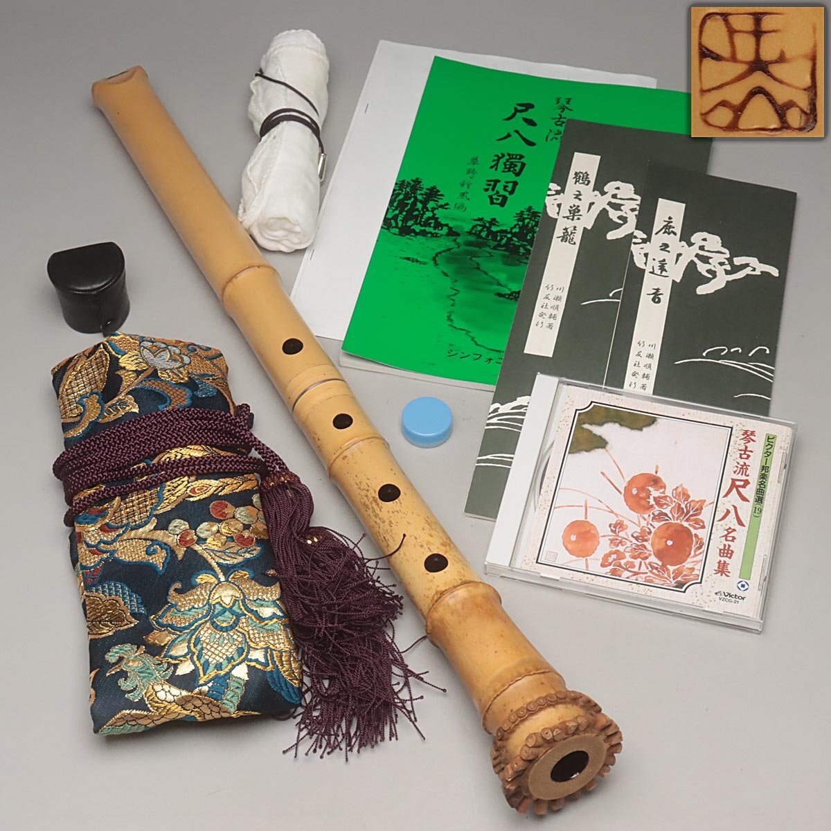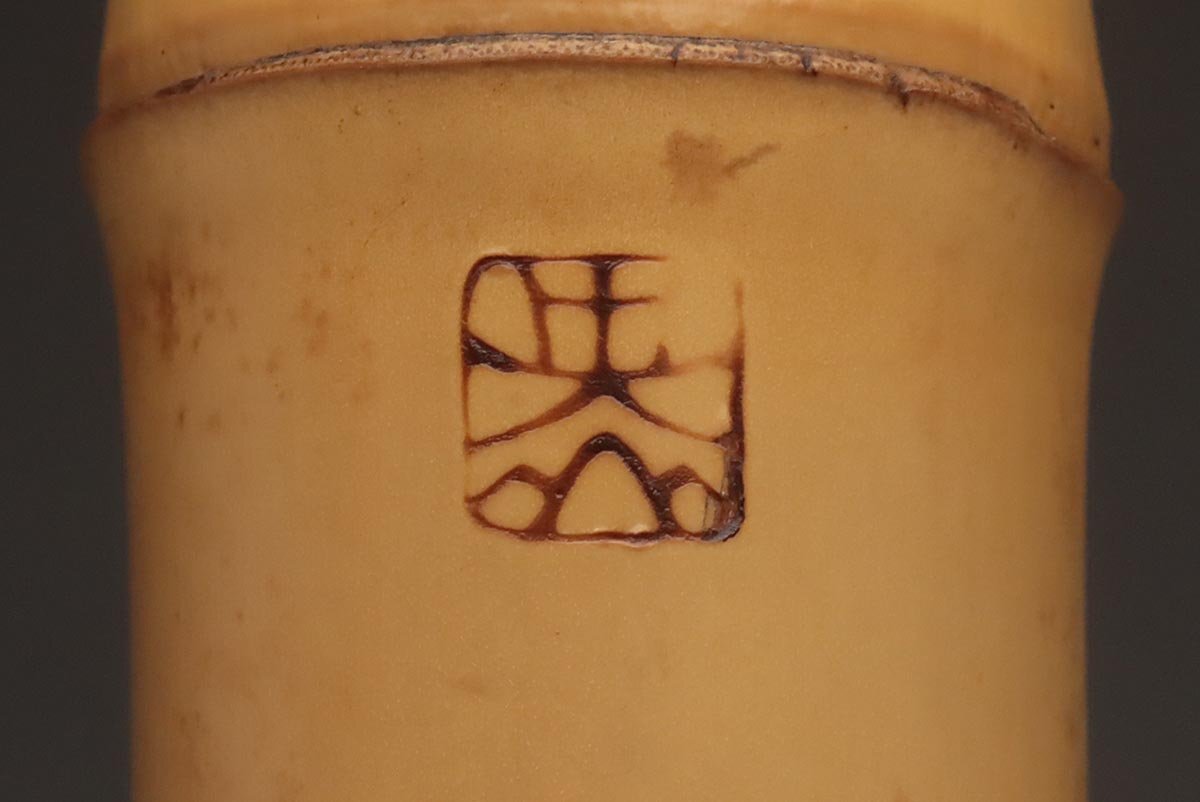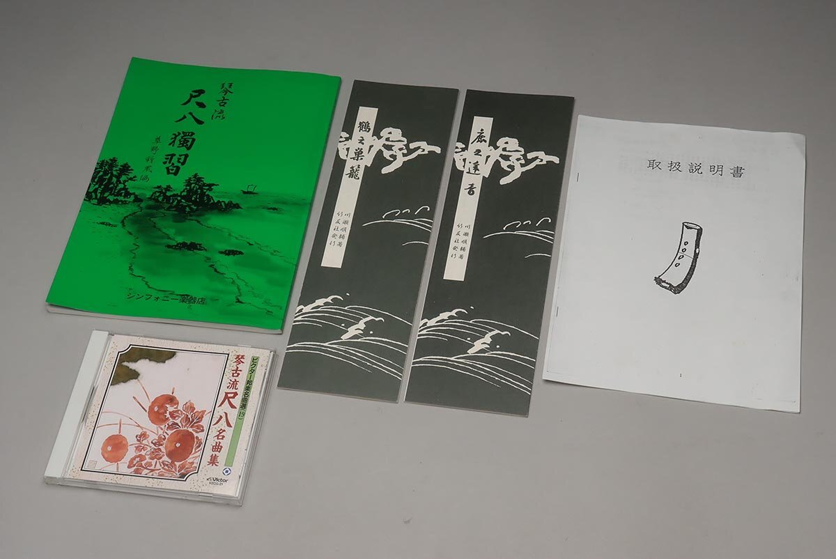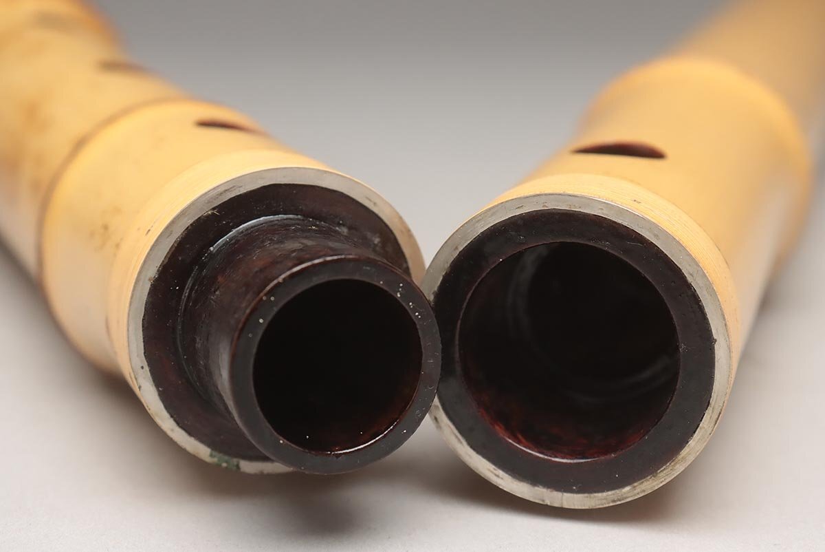 | ◆ 時代和楽器【石倉 央山 銘 二印】竹製 銀継ぎ目 琴山流 金巻歌口 尺八 全長54.5cm 重400g ハードケース/小物付・竹縦笛 ◆