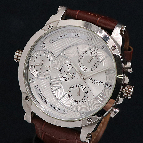 1円 マィデソン QZ シルバー文字盤 クロノグラフ MA011005 メンズ腕時計 3879000 11APY KMR