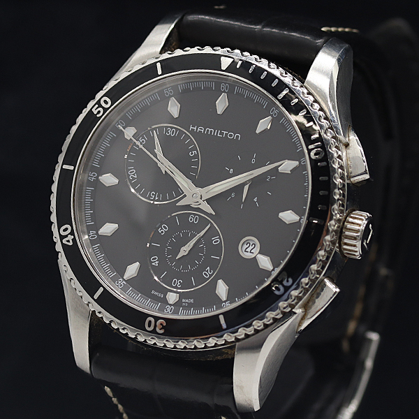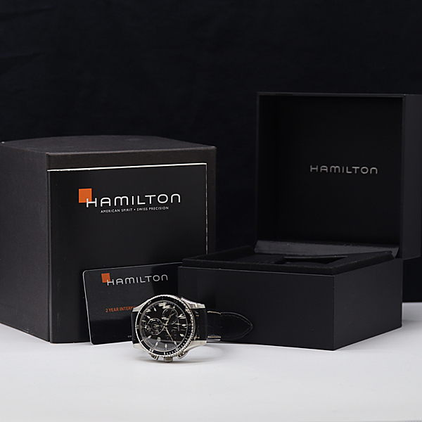 1円 保/箱付 稼働 良品 ハミルトン ジャズマスター H375120 ブラック文字盤 QZ メンズ腕時計 0013200 11ERT KTU