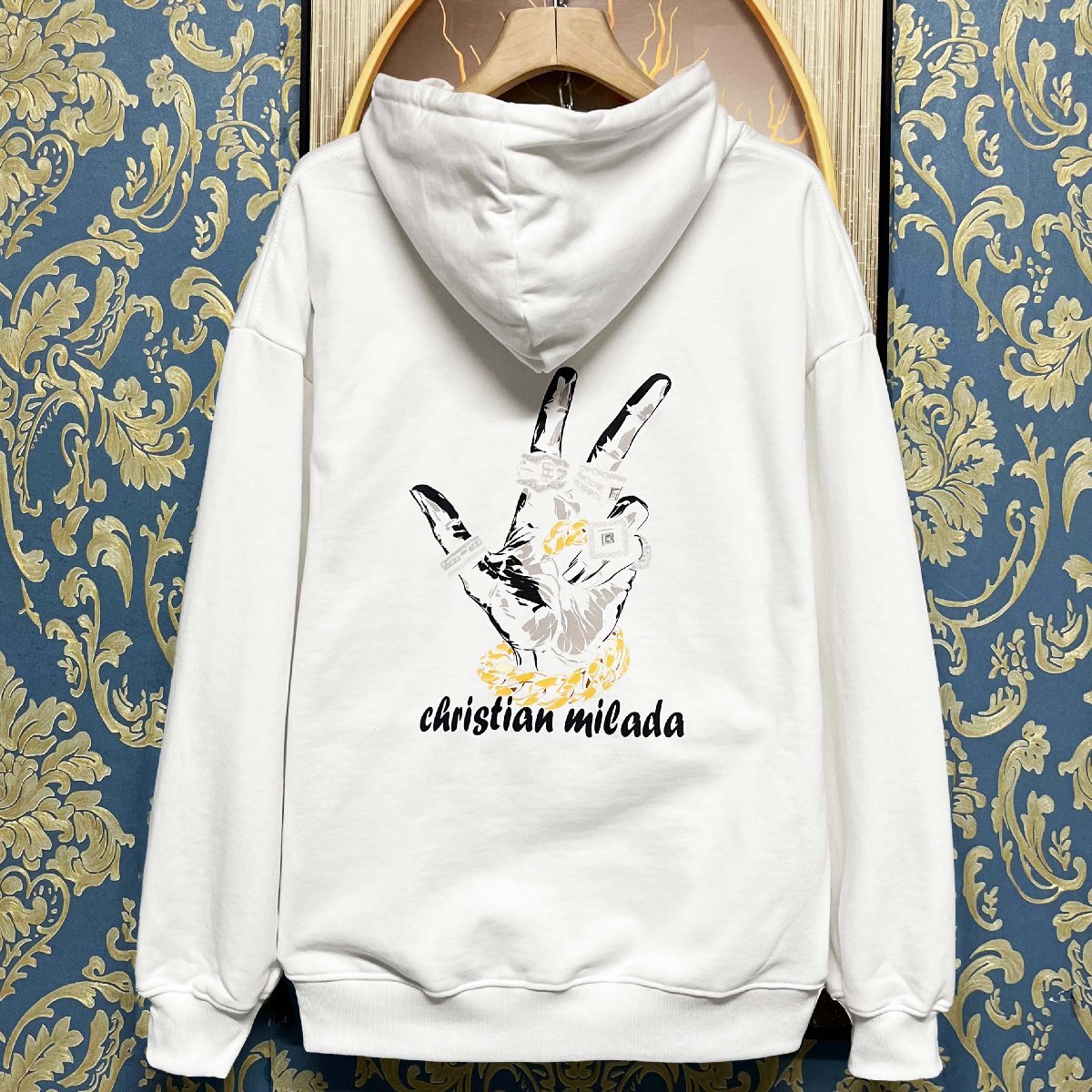 定価4万★christian milada・ミラノ発・パーカー★綿100% 個性 柔らか 保温 プリント ゆったり スウェット 長袖 カジュアル 街着 春秋 XL/50サイズ