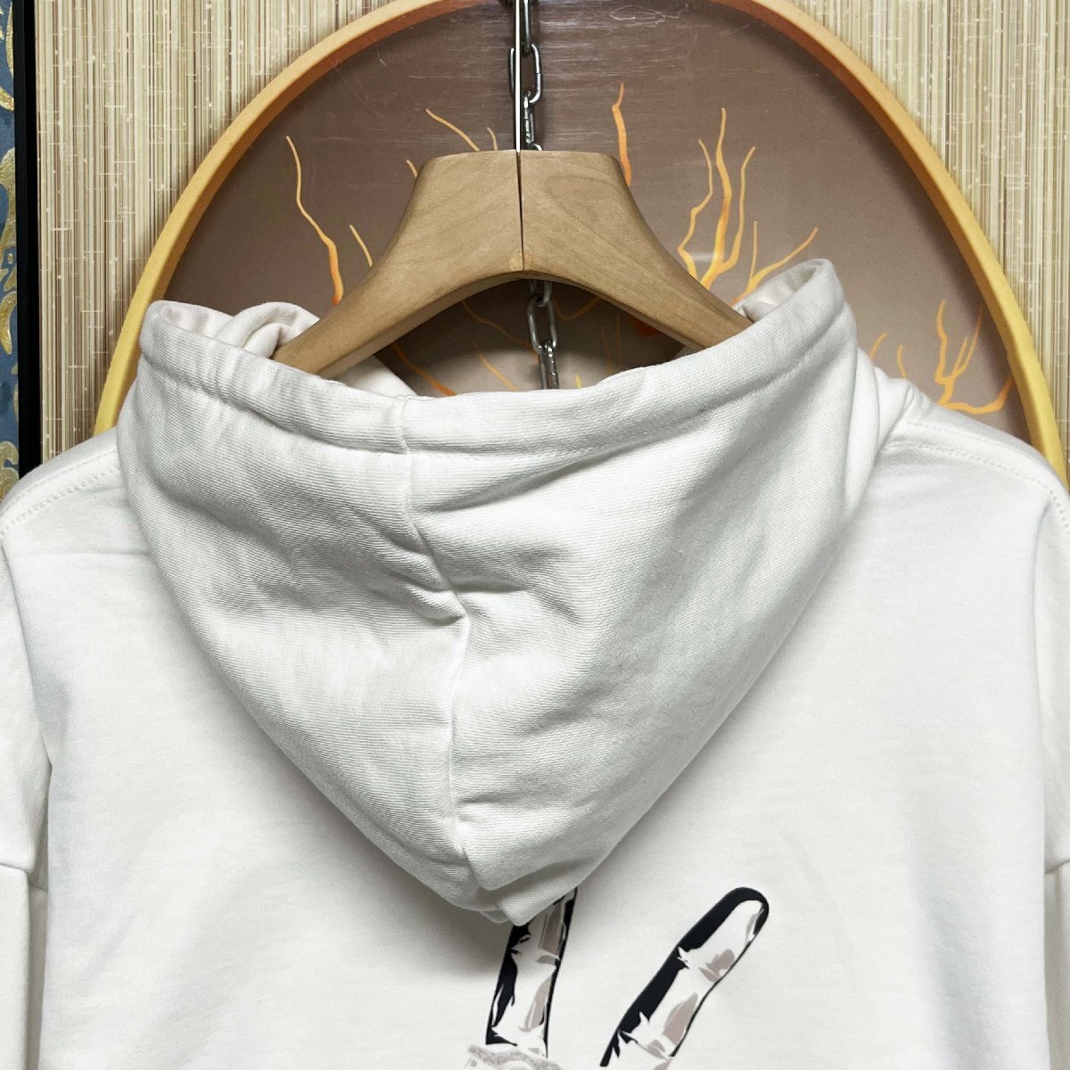 フロントはシンプルな無地デザインで、どんなスタイルにも合わせやすくなっています。背面にはユニークなハンドプリントを施し、ストリート感漂う個性的なアクセントに。定番なフード付きデザインでロングシーズンに着用できます。
