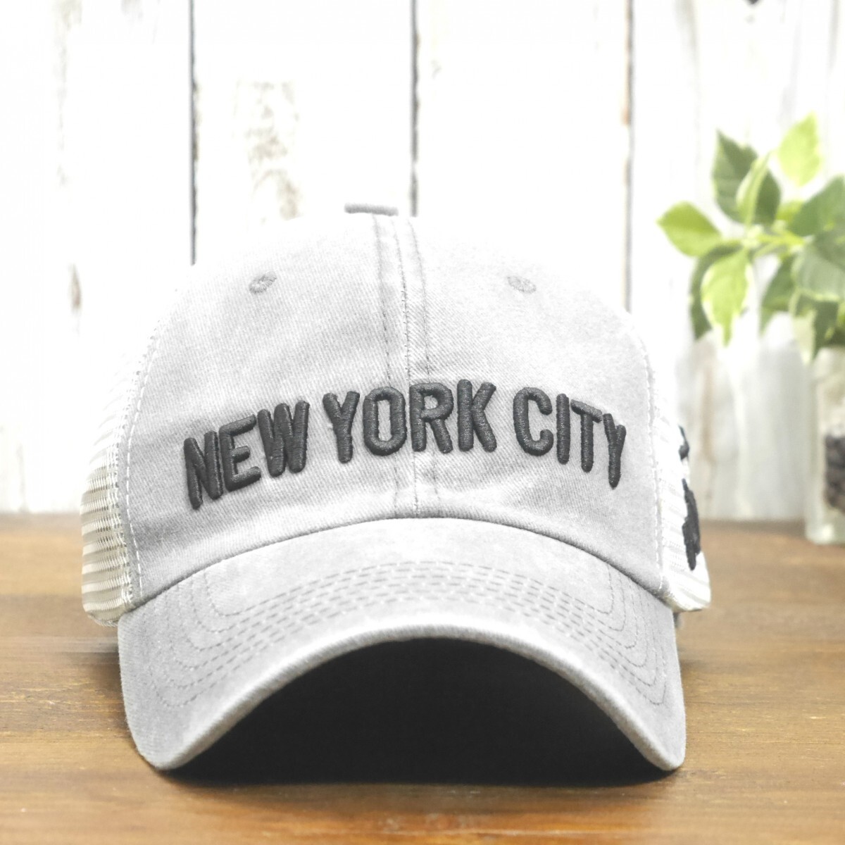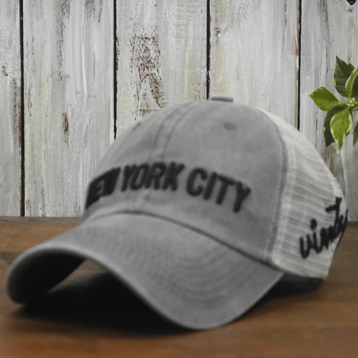 NEW YORK CITY メッシュキャップ グレー ロゴ UV対策 サイズ調整可能 送料\450  男女OK メンズ レディース