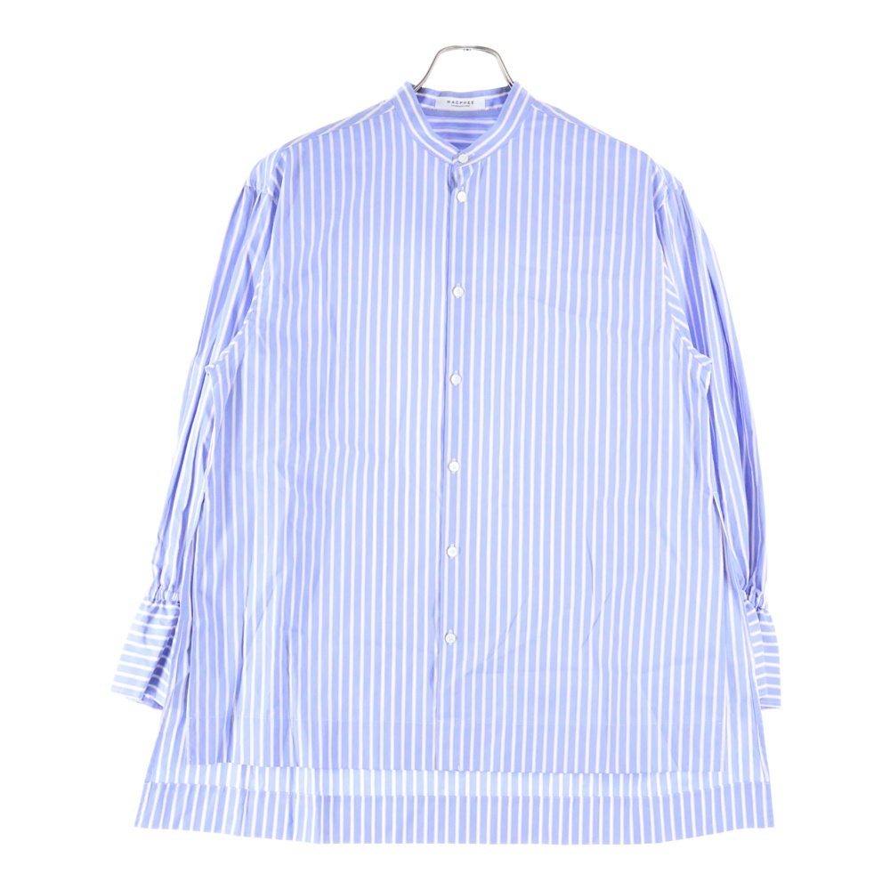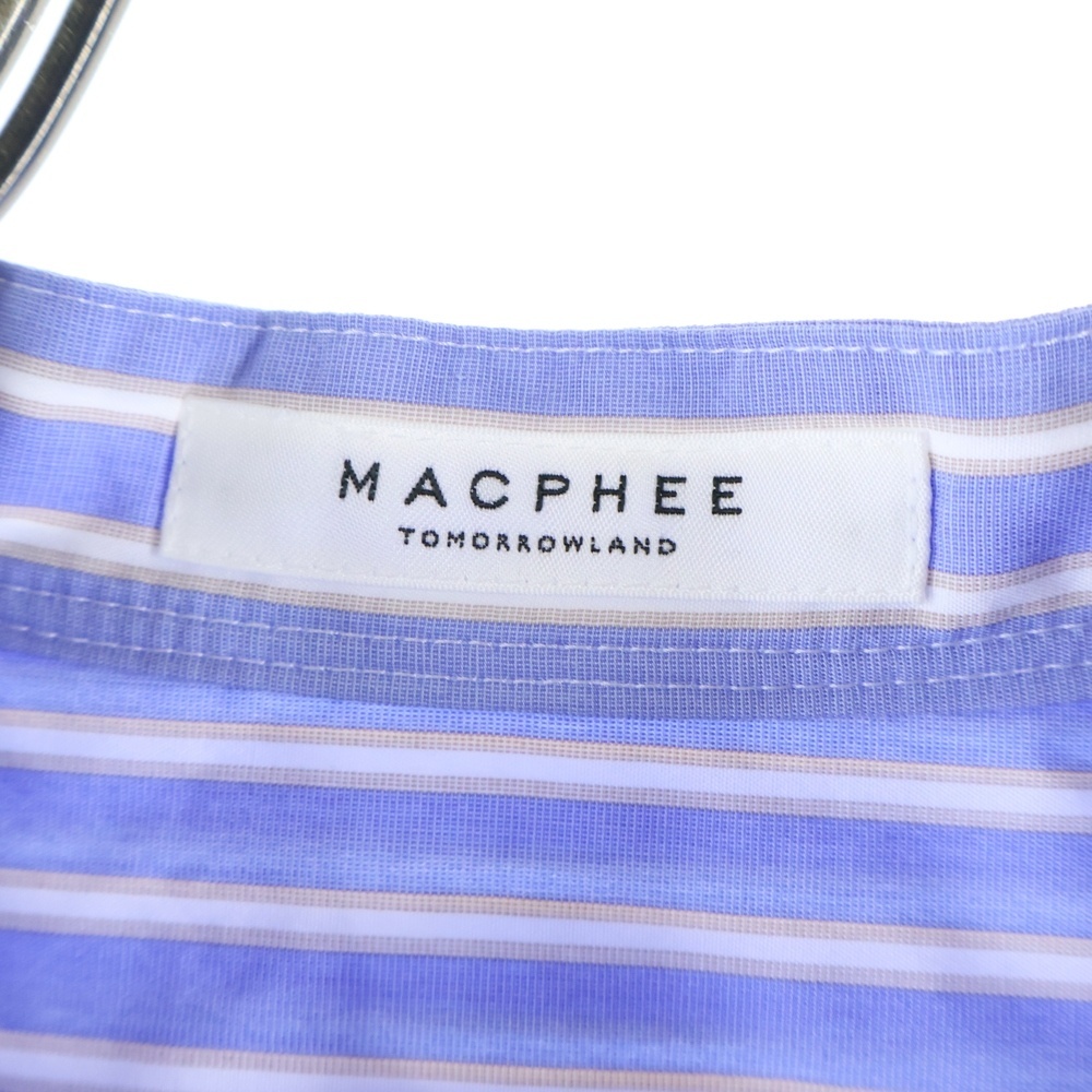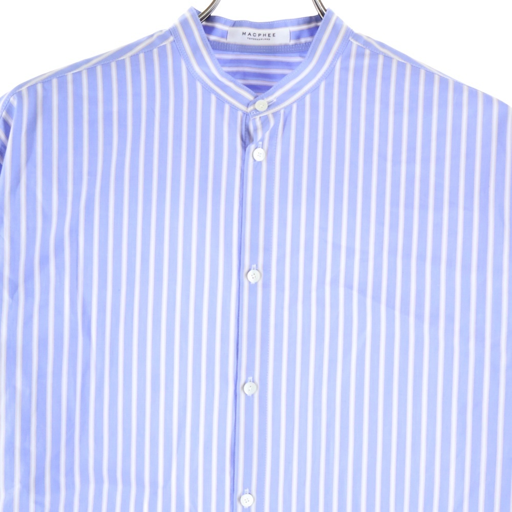MACPHEE マカフィ スタンドカラー ストライプ 長袖シャツ ブルー レディース 12-01-31-01702