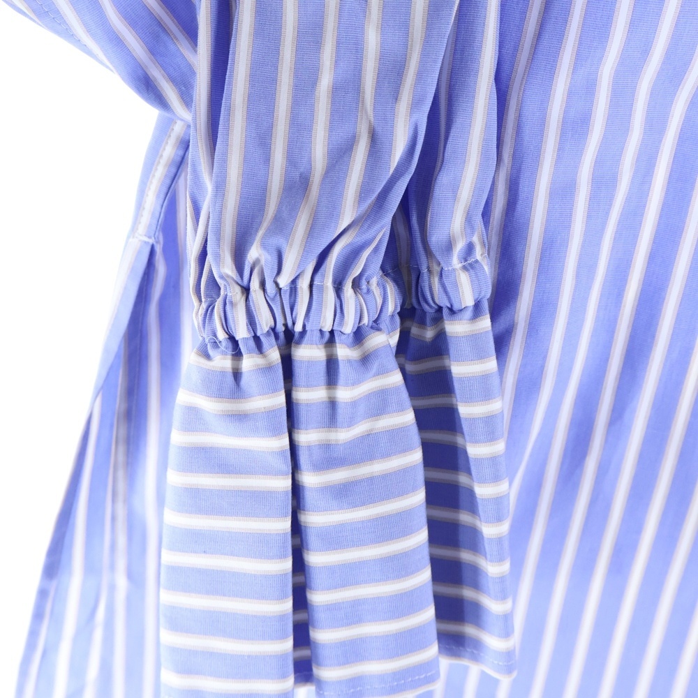 品名スタンドカラー ストライプ 長袖シャツ ブルー レディース 12-01-31-01702