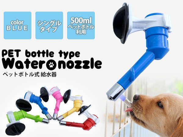 水飲み用 ペットボトル式給水器 500mlペットボトル対応 ブルー 青 ペット用品 犬用品 猫用品 水飲み場 ペットグッズ 水分補給 留守番