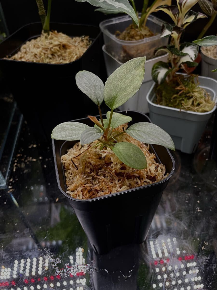 月輪の白さとざらざらとした葉に赤軸、SWEの代名詞であるホワイトエッジも表現として出ておりビロード感と微かに乗る葉の赤みも乗っております。写真では分かりづらいですが葉の表面に細かいラメ敷き詰まった表現になっております。両親の魅力的な表現を引き継いだ非常に秀逸な一株かと存じます。今後の表現が増すとすれば非常にポテンシャルのある楽しみな株です。