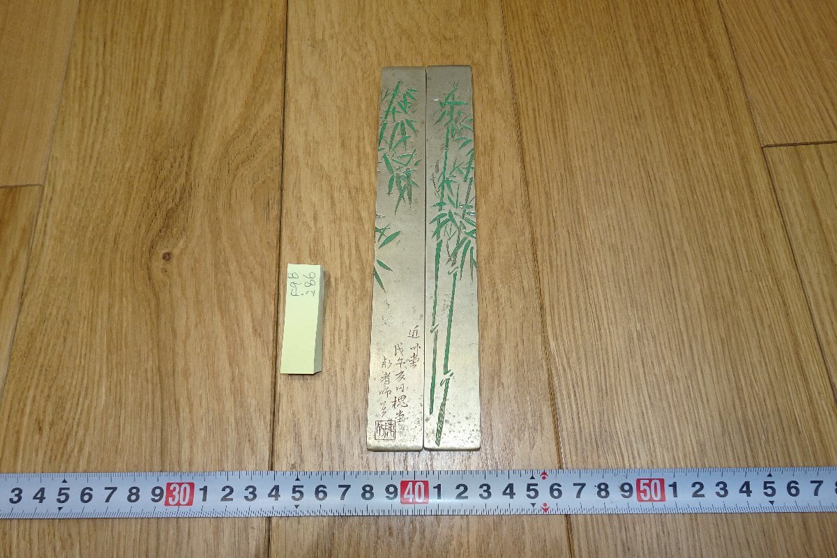 rarebookkyoto 286 中国絵画・陳師曽・衡恪・青緑翠竹  白銅文鎮二本セット 510g 1918年頃作 京都古物