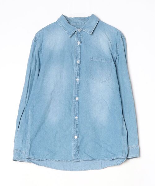 キーワード:シャツ メンズ デニム レギュラーカラー ロング丈 長袖 無地