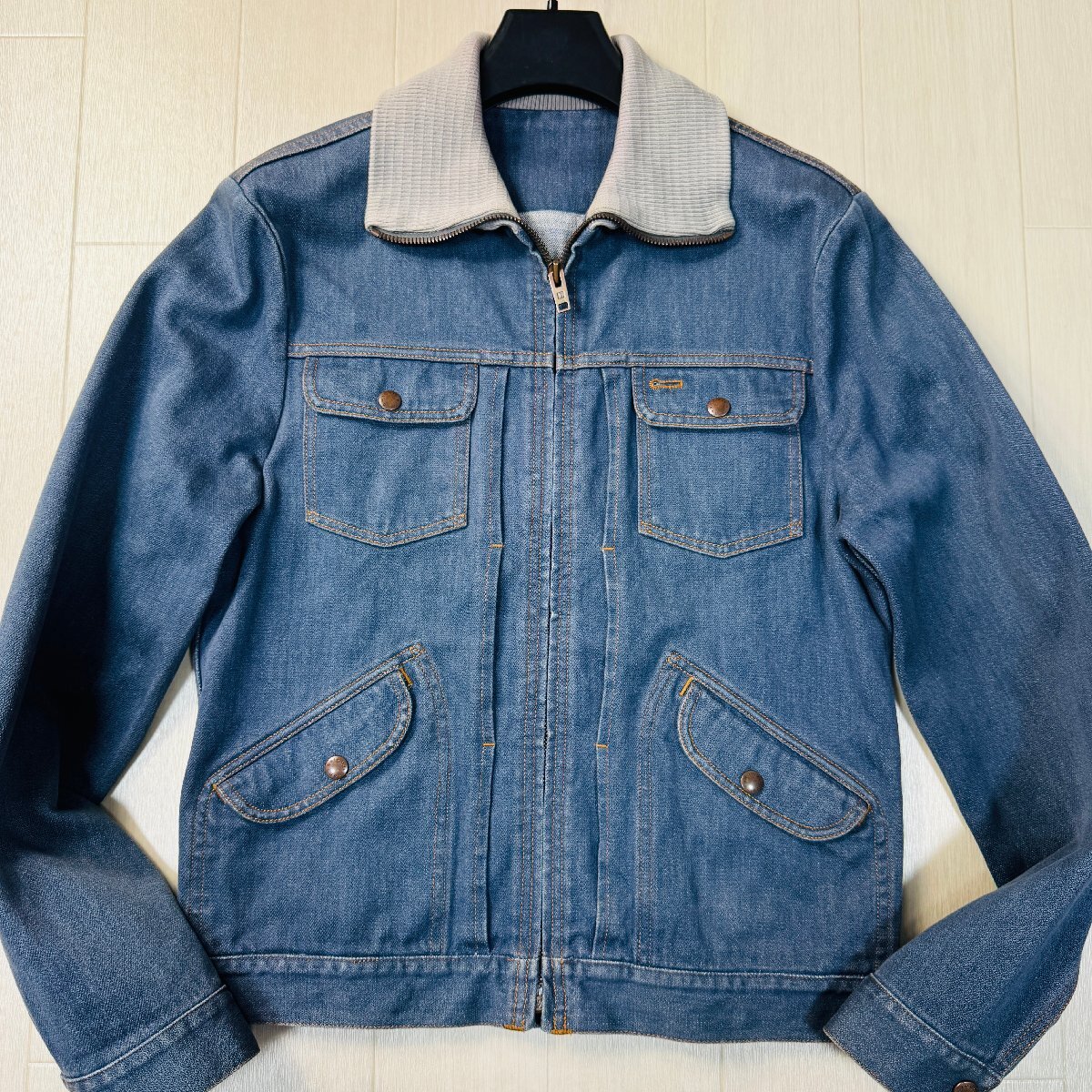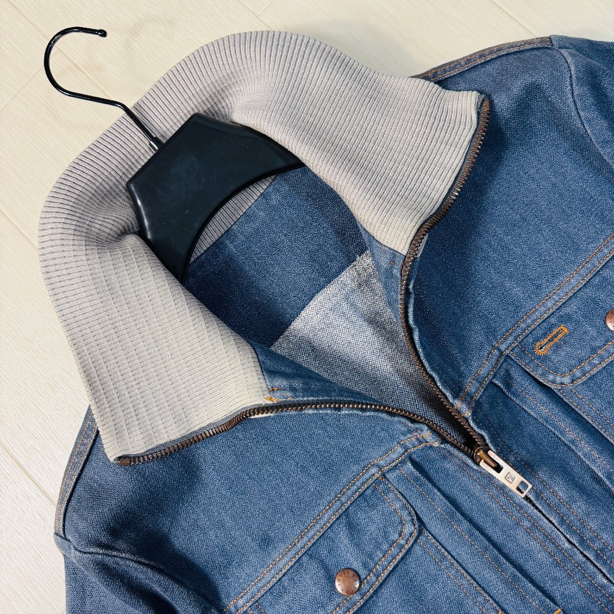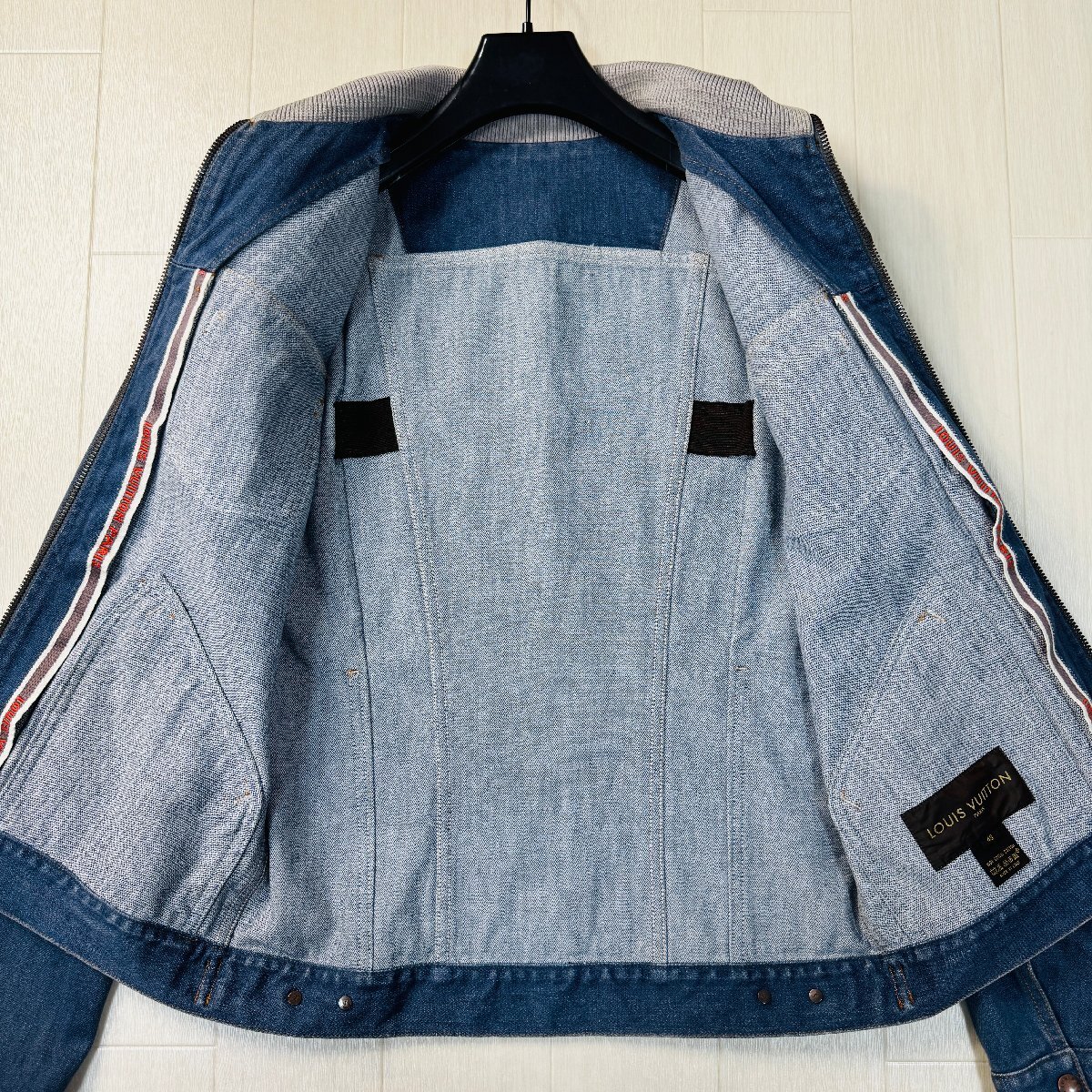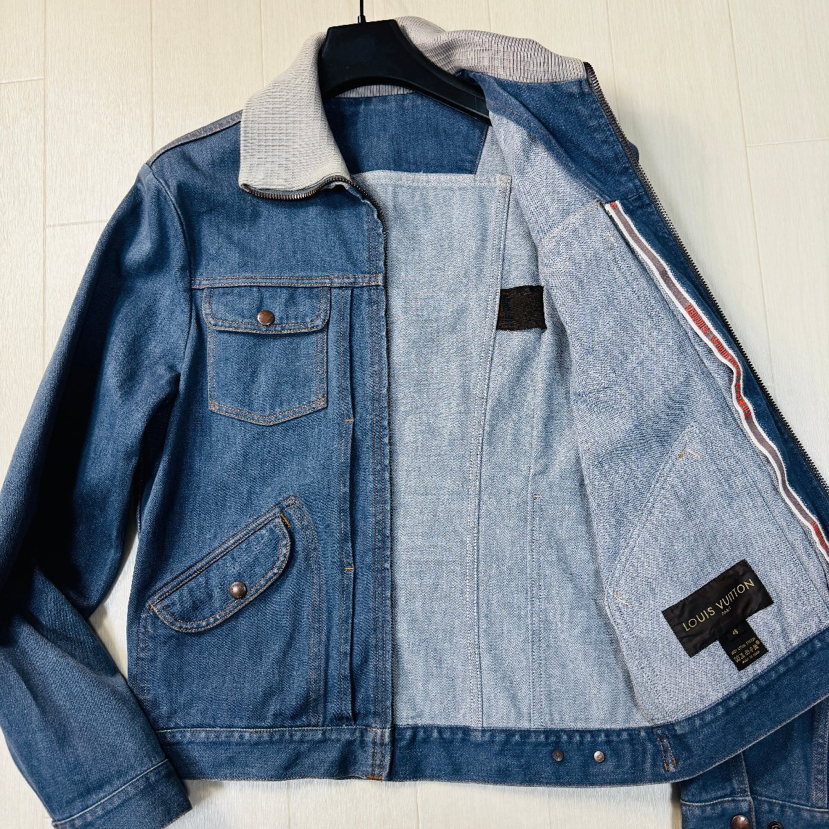 ほぼ未使用/48 L相当★ルイヴィトン LOUIS VUITTON デニムジャケット ジップブルゾン アウター リブニット ロゴテープ メンズ インディゴ