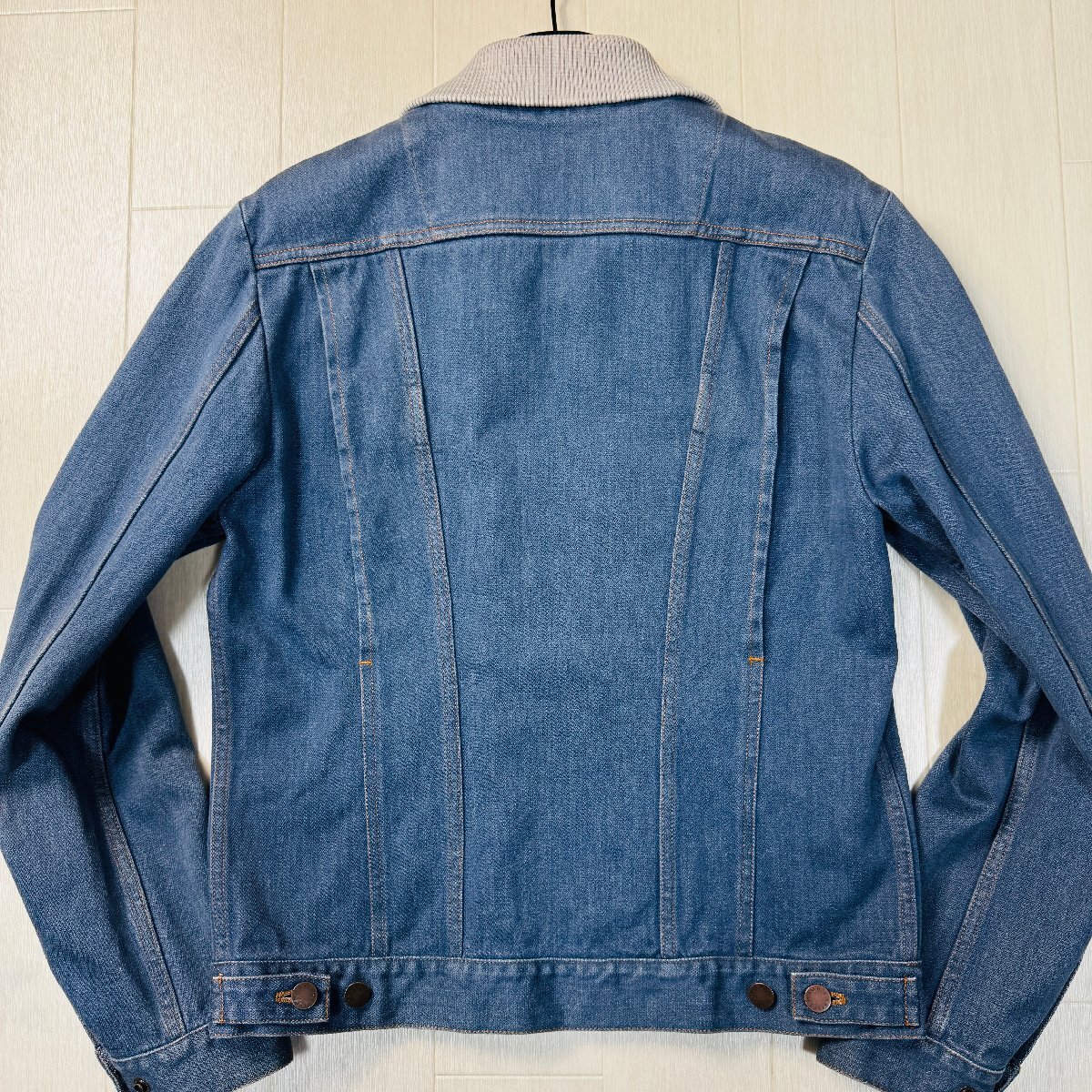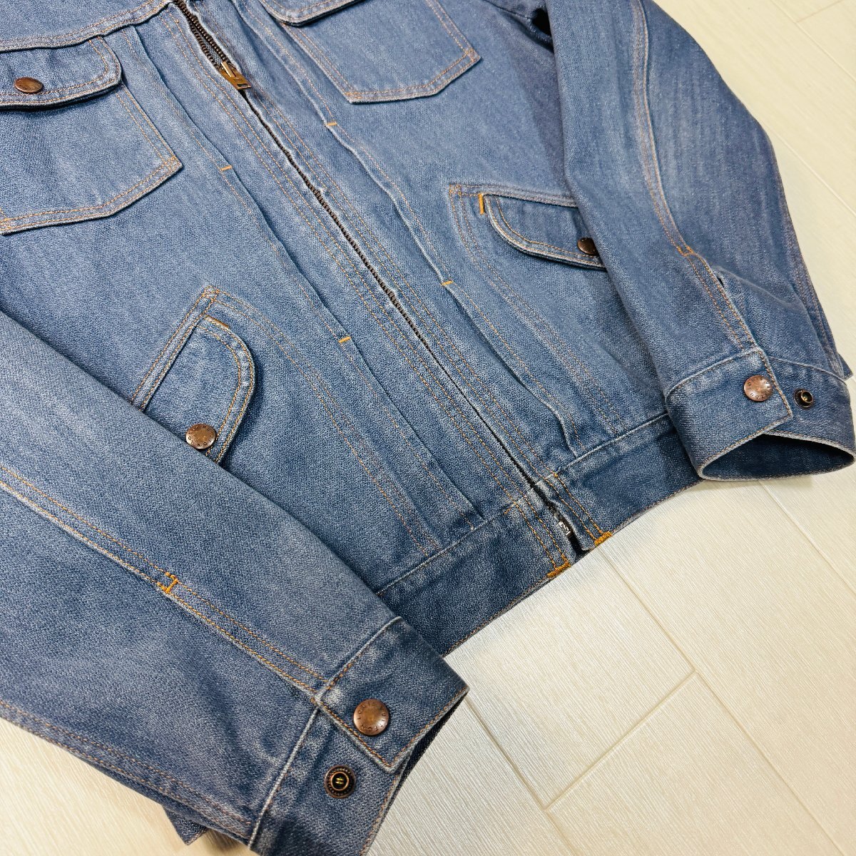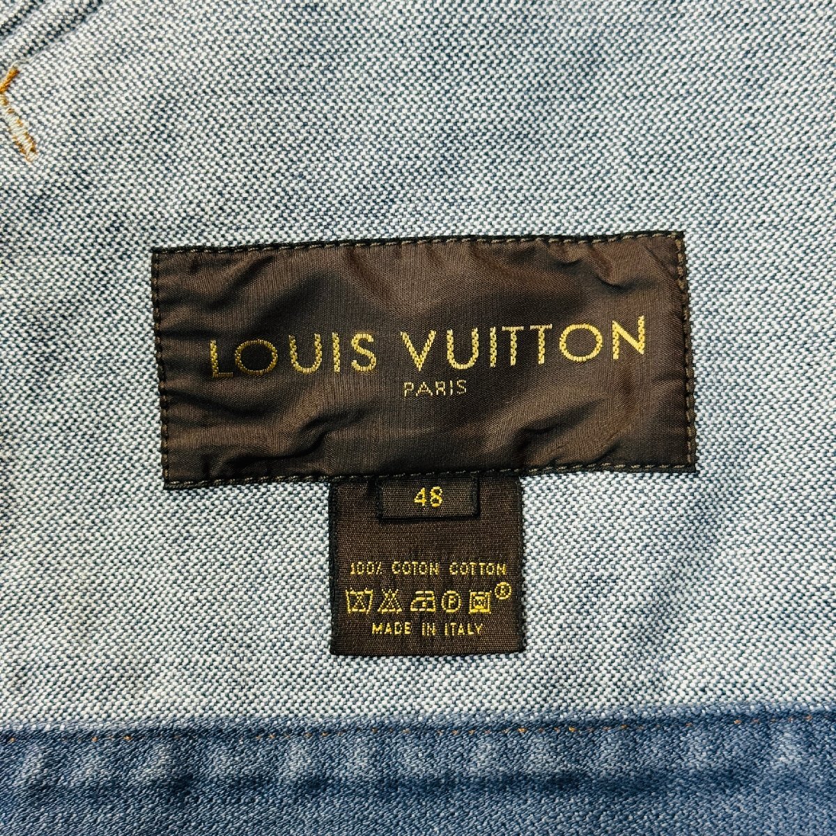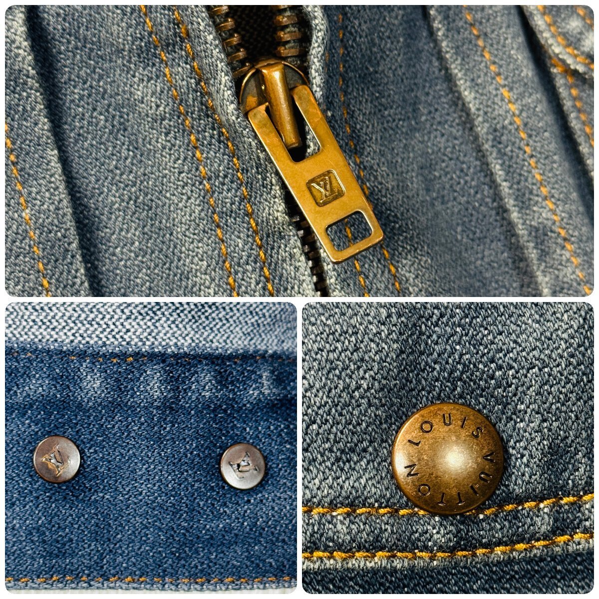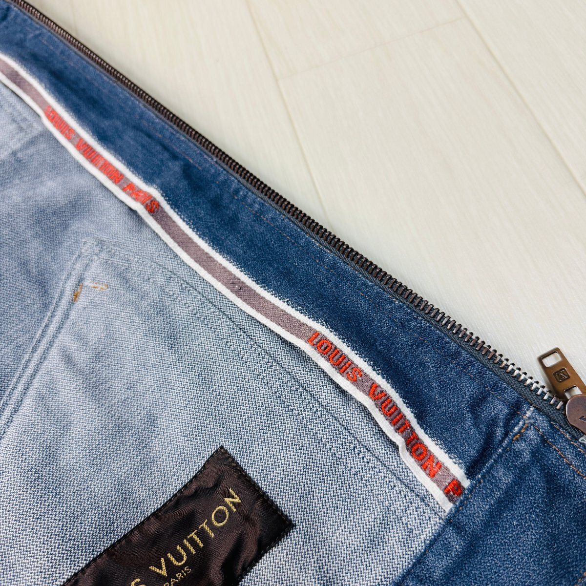 ほぼ未使用/48 L相当★ルイヴィトン LOUIS VUITTON デニムジャケット ジップブルゾン アウター リブニット ロゴテープ メンズ インディゴ