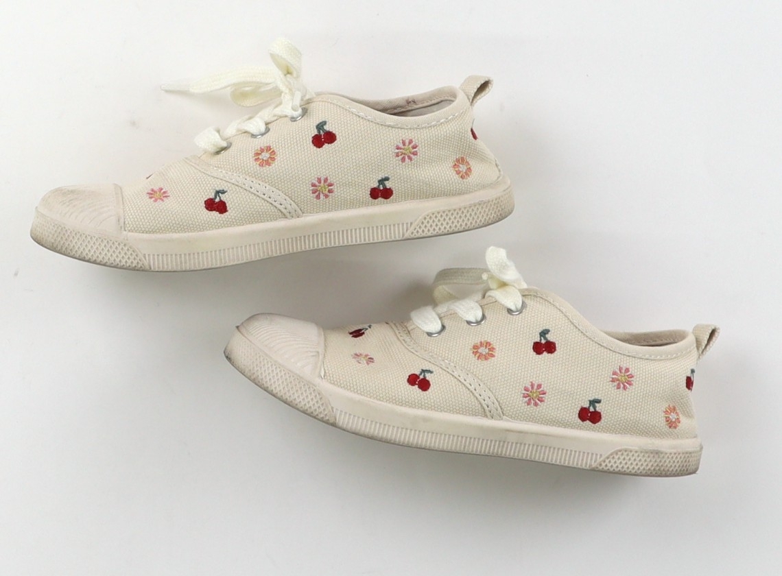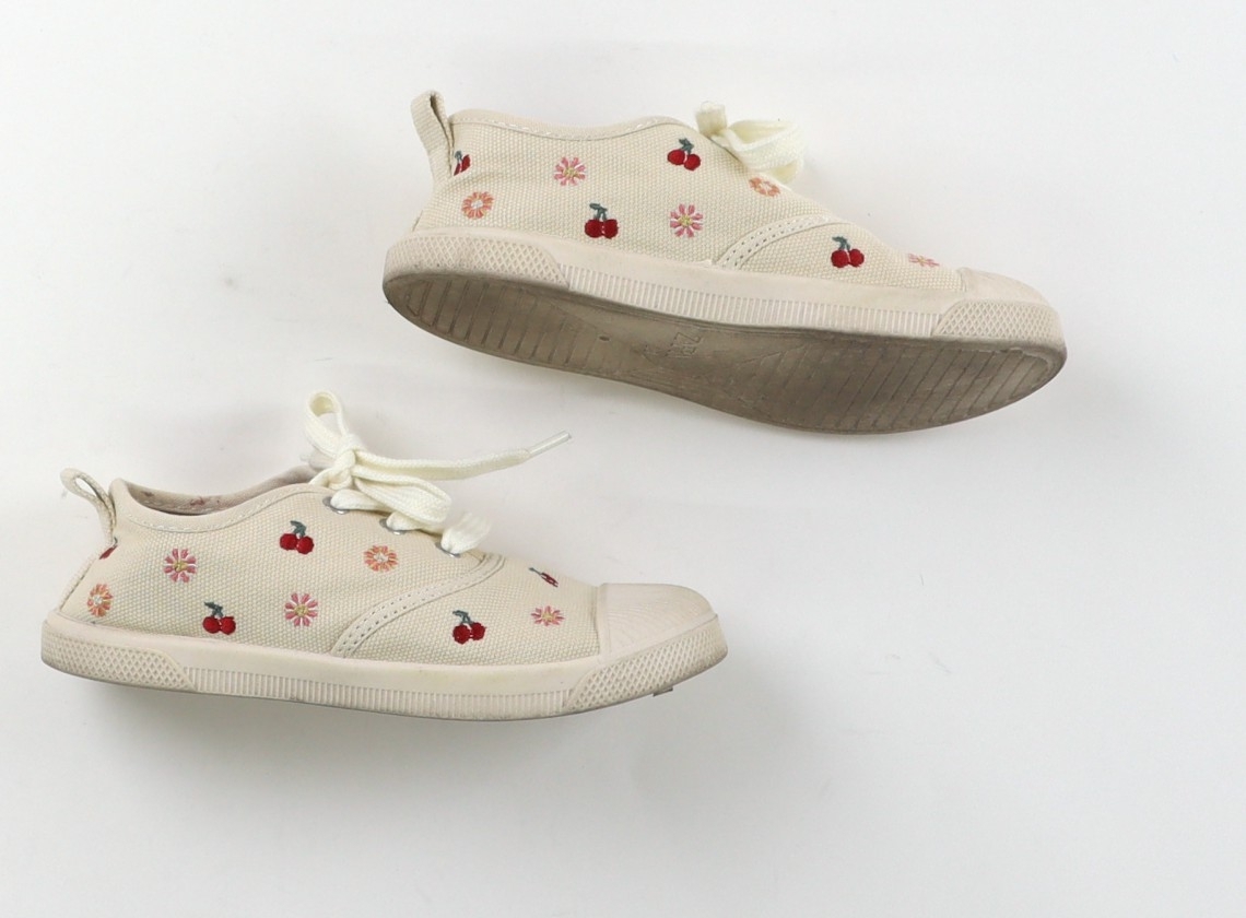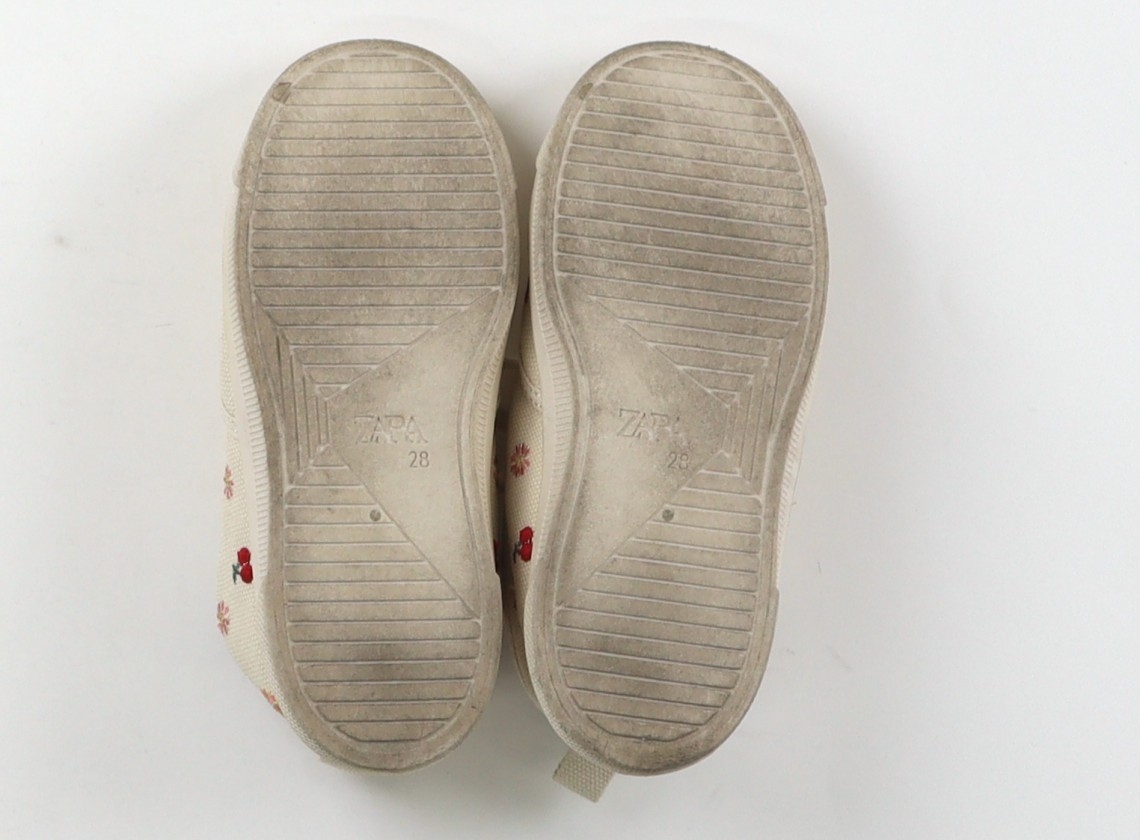 実際のサイズ表記は28です。キャンパス地・踵に折れ・黒ずみ汚れがつま先含めありますがまだお使いいただけそうです。
