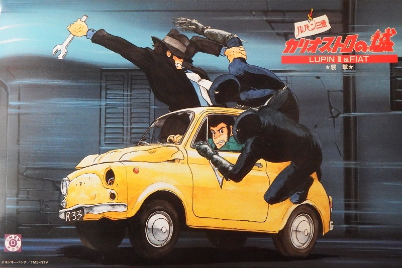 なつかしのアニメ名シーンプラモデル◆モンキー・パンチさん原作「ルパン三世 カリオストロの城」ルパンⅢ&フィアット 襲撃 未組立品です