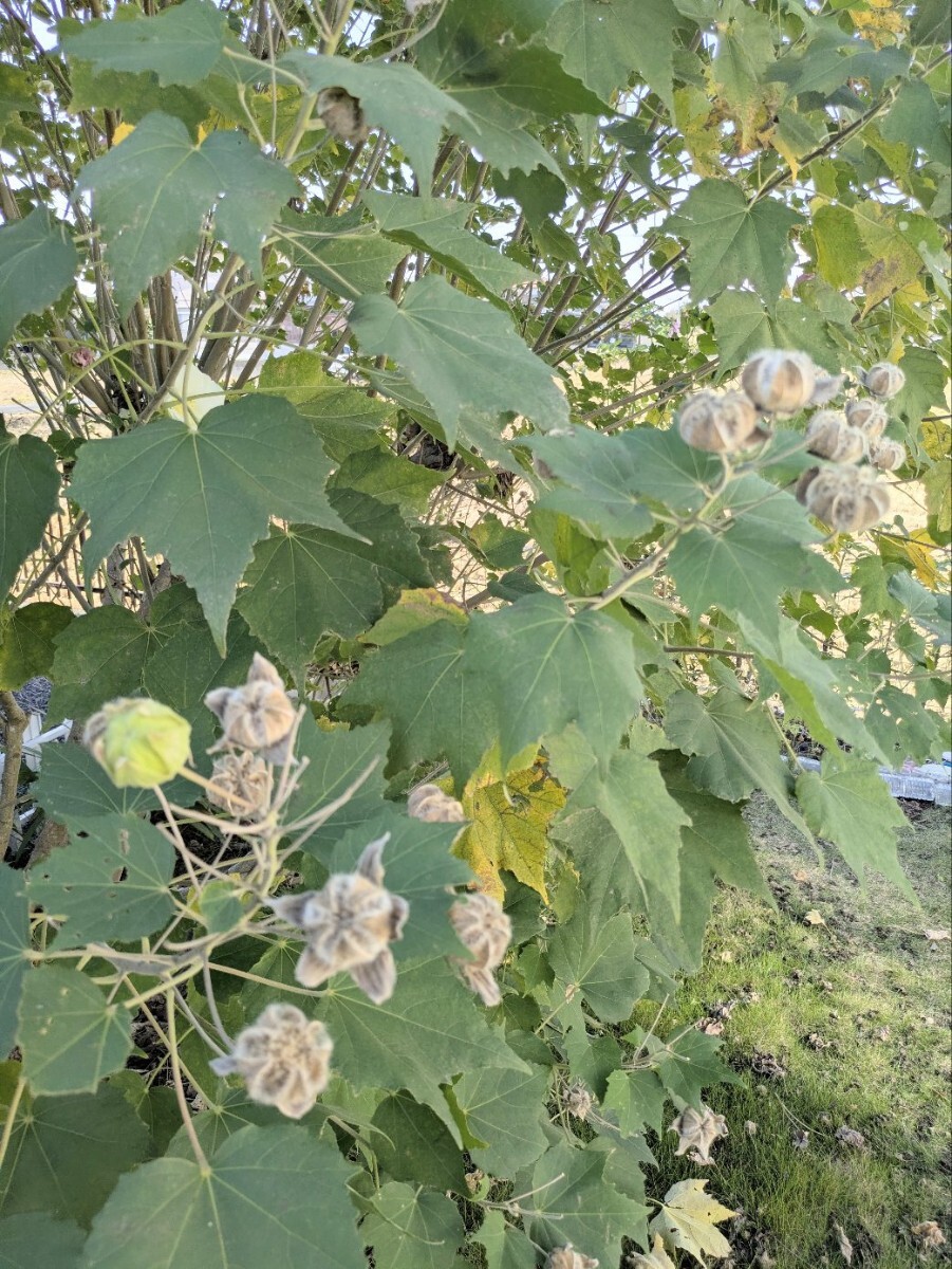 ◎花弁5枚のヒトエスイフヨウ。花つきや実つき(種)が非常にいい株です。